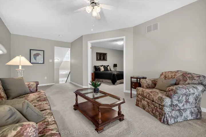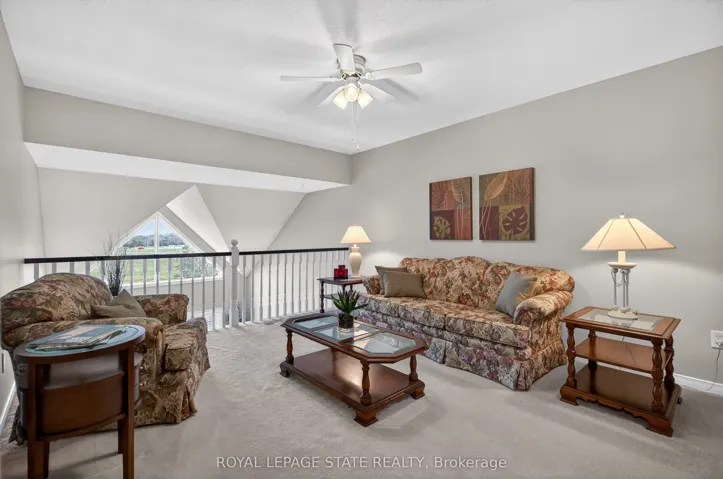 +"PublicRemarks": "Located in a quiet, well-maintained and highly desirable complex, this 3 bdrm, 2.5 bath executive bungaloft offers low-maintenance living in the coveted town of Ancaster. The attractive ext showcases timeless stone accents, a charming bay window, a covered front porch, & an upper dormer. The property also feat surfaced parking plus a 1-car grg w/ inside entry. Stepping through the front door with bonus phantom screen, a bright & welcoming foyer leads to a thoughtfully designed open-concept layout, feat a well-appointed kitch w/ ample cabinetry & pot lighting. The kitch flows seamlessly into a spacious din area & the stunning liv rm w/ vaulted ceil & oversized windows, Cali shutters, & a cozy corner gas FP. Sliding doors lead to a private interlock patio, offering a peaceful outdoor retreat. The main flr is designed for convenient 1 lvl living, feat a front bdrm w/ flex for guests or a home office, a powder rm, main flr laund, & a well-appointed primary w/ dbl closets and an updated 3-piece ensuite with an oversized glass walk-in shower and additional storage cabinetry. Upstairs, the open loft provides a versatile multi-purpose space overlooking the main level, perfect for a variety of purposes. A spacious second-level bedroom offers a walk-in closet and a full 4-piece ensuite, making it an ideal secondary primary suite. The bsmt lvl feat a finished hallway leading to an unspoiled area with a bathroom rough-in, offering excellent potential for future customization. Backing directly onto Meadowlands Community Park with no immediate rear neighbours, this rare offering provides added privacy and a premium setting. Additional highlights include visitor parking, roof shingles replaced approximately 6 years ago, and updated furnace/central air conditioning. Enjoy the convenience of living just minutes to top-rated schools, shopping centres, restaurants, walking trails, parks, and major highway access - all within the highly sought-after Meadowlands community of Ancaster."