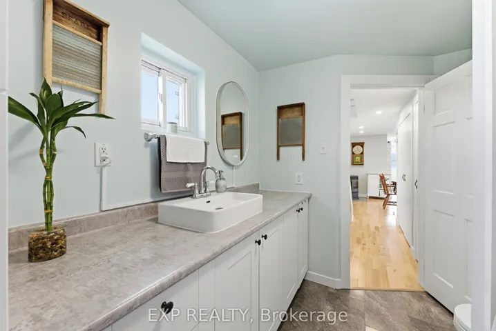 +"PublicRemarks": "Welcome to this beautifully updated farmhouse that perfectly blends timeless charm with modern convenience. This inviting 3-bedroom, 1.5-bath home has been thoughtfully renovated throughout, offering a move-in-ready opportunity in a peaceful setting.The main floor features a bright and functional layout, highlighted by a stunning new kitchen with updated finishes and plenty of space for cooking and gathering. Convenient main floor laundry and full bathroom add to the home's practicality for everyday living. Upstairs, you'll find three comfortable bedrooms and half bathroom, plus a bonus living space, creating a cozy and private retreat for family or guests. Step outside to enjoy your own private yard-perfect for relaxing, entertaining, or soaking up the summer sun by the pool. Surrounded by mature greenery, fields, and views of the creek, this outdoor space offers both tranquility and privacy. Whether you're looking for country charm with modern updates or a serene place to call home, this farmhouse delivers the best of both worlds, while being located only minutes from town, and the 401."