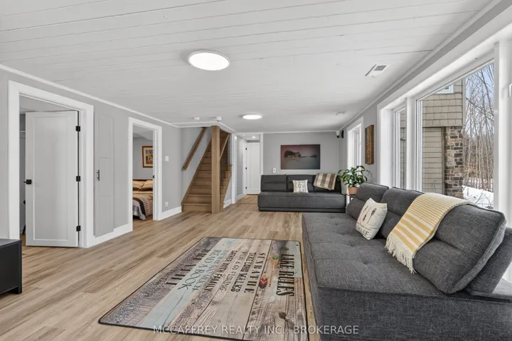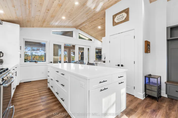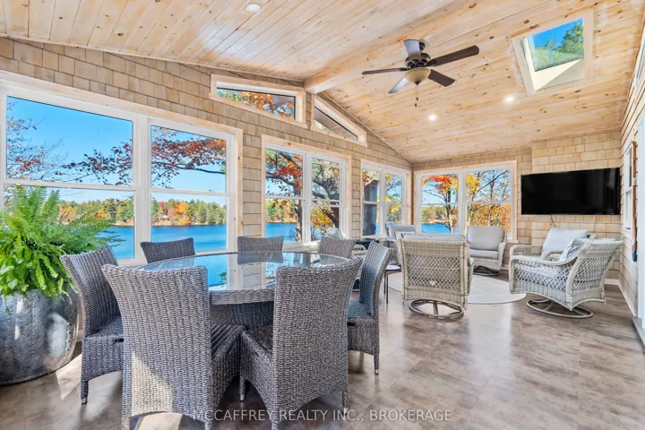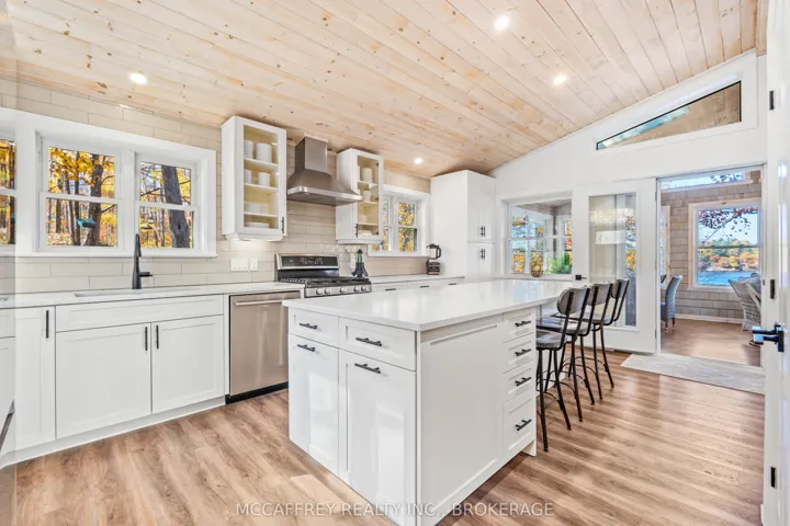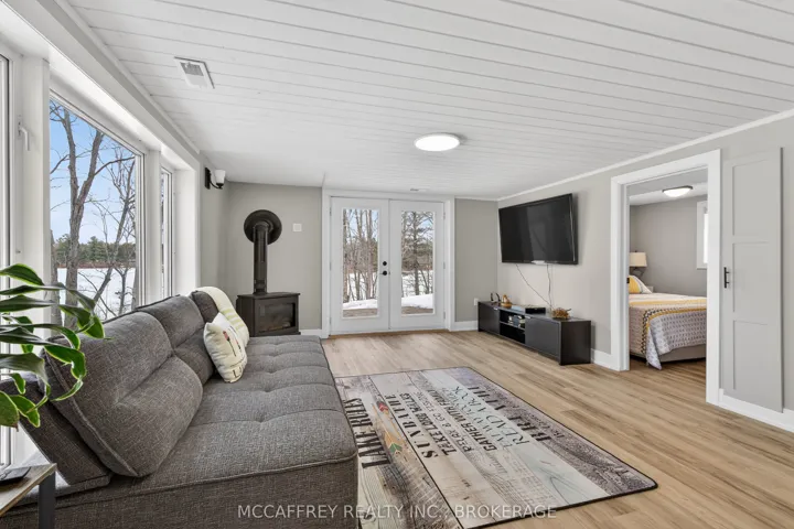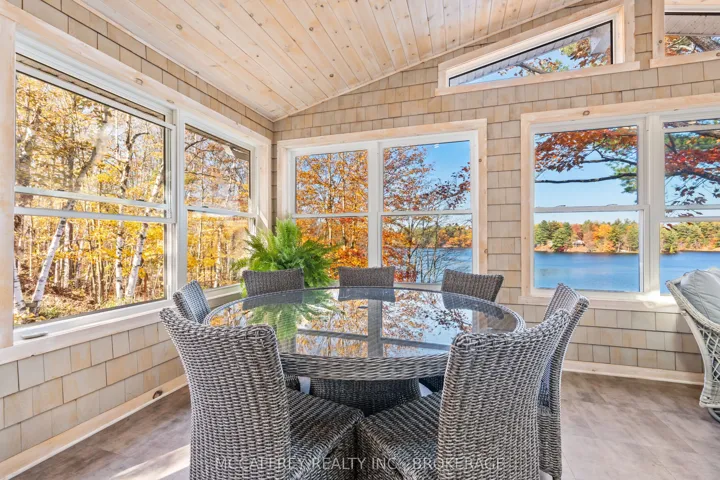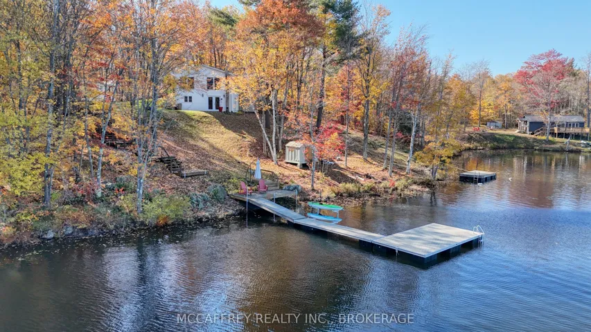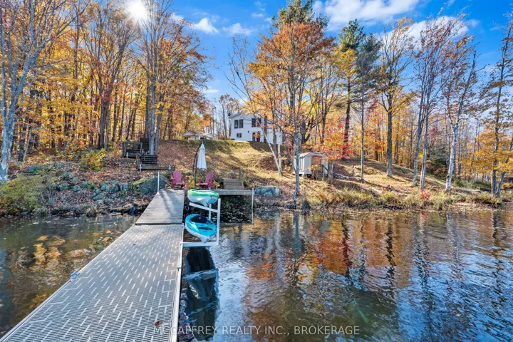+"PublicRemarks": "Welcome to your own slice of waterfront paradise on beautiful Elbow Lake. This beautifully updated bungalow sits on just over 140 feet of pristine shoreline, offering peaceful surroundings, mature trees, and stunning water views from nearly every room. Step inside to a gorgeous, fully updated kitchen featuring Quartz countertops, a large island, and ample cupboard space-perfect for entertaining or everyday living. The kitchen flows seamlessly into the spacious three-season sunroom, wrapped in windows that showcase breathtaking views of the lake and filled with natural light. From here, step out onto the deck overlooking the water, an ideal spot for morning coffee or evening sunsets. The main level also offers convenient main floor laundry, a 4-piece bathroom, and comfortable dining and living spaces designed to capture the beauty of the waterfront setting. The primary bedroom is a peaceful retreat, complete with a walk-in closet and private 3-piece ensuite. The fully finished walk-out basement expands the living space with two additional bedrooms, a 2-piece bathroom, and a generous utility room with plenty of storage. Patio doors lead directly outside, making it easy to enjoy the lakefront lifestyle. Outdoors, the property is framed by large mature trees that provide privacy and natural beauty. Enjoy clean, deep water from the brand new dock, perfect for swimming, boating, or simply relaxing by the shore. A convenient bunkie offers additional space for guests, making weekend gatherings and summer visits effortless. Whether you're looking for a year-round home or the perfect waterfront getaway, this exceptional property delivers the ultimate Elbow Lake lifestyle."