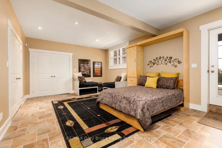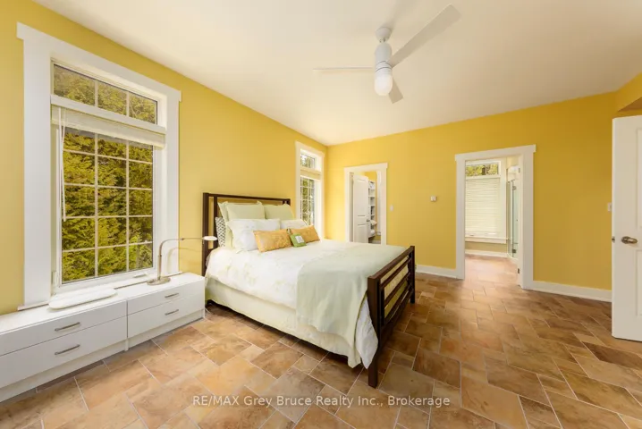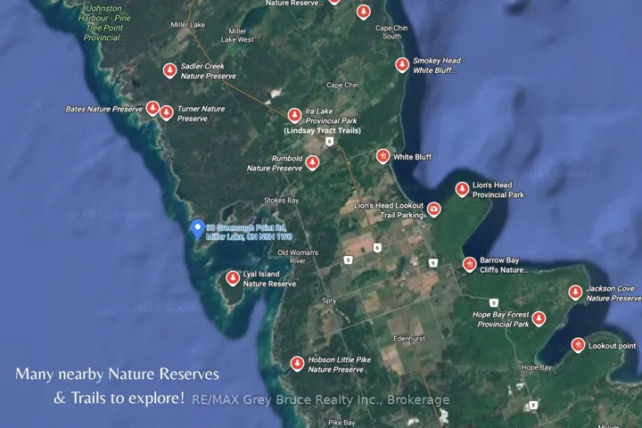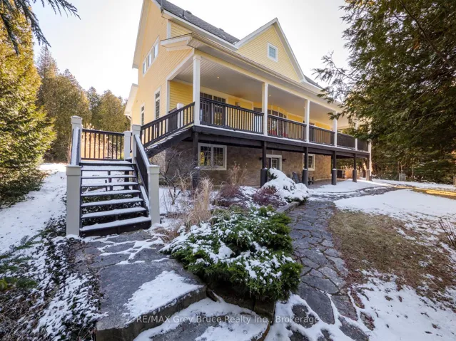 +"PublicRemarks": "A Rare Bruce Peninsula Sanctuary on Lake Huron! Immerse yourself in the natural beauty of this exceptional 1.9-acre waterfront property on Lake Huron, offering 164 ft. of pristine rocky shoreline and coveted western exposure. Tucked within the peaceful, forested setting of Greenough Harbour, this property is ideal for those who value biodiversity, ecological living, and quiet surroundings. A winding flagstone path leads through cedar and native woodland to the clear waters of Lake Huron - perfect for swimming, kayaking, and shoreline exploration. This naturally rich setting offers an immersive Ontario ecosystem experience, from birdsong at sunrise to spectacular sunsets, Dark Sky stargazing, and the Aurora Borealis. Located near the Bruce Trail, Black Creek Provincial Park, and Fathom Five National Marine Park, you'll enjoy access to protected landscapes, hiking, and world-class freshwater diving. The fully furnished, turnkey home offers over 3,100 sq. ft. of professionally designed living space, seamlessly blending modern comfort with nature. Expansive windows capture forest and water views, while in-floor heating and backup generator provide efficiency. A wraparound covered deck invites relaxation, wildlife watching, and low-impact outdoor living. Inside, the open-concept design features a custom kitchen with island, stainless steel appliances, and warming drawer. With 3 bedrooms + Murphy bed and 4.5 bathrooms, including multiple ensuites, the layout is ideal for hosting family or guests. The primary suite offers deck access, walk-in closet, and 4-Pc ensuite. A loft overlooks the main living area, while the lower level -with separate entry - adds flexible space for guests, theatre room, laundry, and storage. Surrounded by a thriving natural landscape, this property is perfectly suited for a sustainable lifestyle or year-round residence in a peaceful, low-density community. Greenough Harbour is where nature, privacy, and refined living meet on the Bruce Peninsula."
