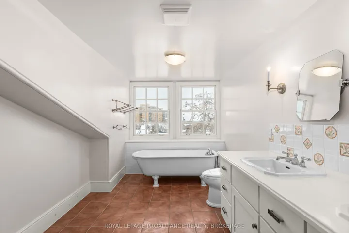 +"PublicRemarks": "A rare opportunity to own a distinguished 3-storey limestone home steps from Kingston's waterfront. Blending historic charm with modern updates, this elegant residence features grand principal rooms, soaring ceilings, and a freshly repainted third floor. Across from Richardson Beach and Mc Donald Park, enjoy lakeside living, a finished basement, private courtyard, and a separate 3 bedroom, 2 bathroom coach house. Two garage bays complete this exceptional offering."
