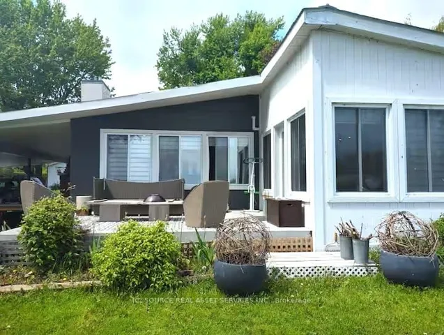 +"PublicRemarks": "Live your waterfront dream in this updated 3 bedroom home at the end of a quiet cul de sac, 1 hour from downtown Montreal, 90 mins from Ottawa. The perfect remote work retreat. Panoramic views of Lac St. Francis and the Adirondack mountain chain from your indoor and outdoor living spaces. Featuring several upgrades. Enter through the carport into the large, bright living area with cathedral ceilings and wall-to-wall water views. Gas fireplace. Gourmet kitchen with a leathered granite island made for entertaining. Six-burner gas stove. Counter-depth fridge. Primary bedroom with 4pc ensuite and jet soaker tub. Second bedroom fits queen or king bed with room to spare. Laundry, guest washroom and water system hidden in hallway that leads to a second living/family room with separate front-door entrance, 3rd bedroom and second bathroom. This wing of the surprisingly spacious home could be a master bedroom getaway, or a guest / in-law suite with income potential. Other notable improvements: heat pump heating/air con, foam spray insulation, HWT on demand, water tx system, flood prevention french drain with auto-pump system from crawl space to the lake. Outside features new composite deck for boat docking and waterside seating and a cedar privacy hedge, planted at the front by the current owner to provide a wall between the front yard and guest parking. A storage shed detached large garage/workshop with high ceilings offer further room for expansion. The possibilities are endless in this private lot. *For Additional Property Details Click The Brochure Icon Below*"