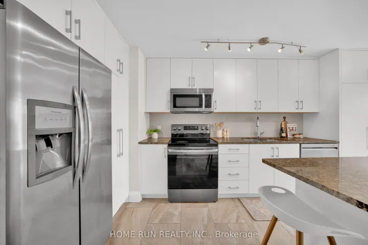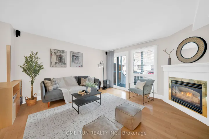 +"PublicRemarks": "Welcome to this well-maintained, sun-filled 2-bedroom 1.5-bathroom condo townhouse offering a perfect blend of comfort, style, and functionality. The thoughtfully designed custom kitchen features timeless white cabinetry, granite countertops, a spacious island with pots & pans drawers, built-in seating, and smart storage solutions. The bright open-concept living and dining area showcases maple hardwood floors, a cozy gas fireplace, and an updated patio door (2023) leading to your private BBQ area-ideal for relaxing or entertaining. The lower level offers two generously sized bedrooms with large windows, a beautifully renovated bathroom with tiled walls and glass shower and towel warmer, along with laminate flooring, a convenient laundry room, and ample storage. Additional highlights include carpet-free living, smooth ceilings on the main level, maple hardwood stairs, and a built-in projector screen with Harman Kardon surround sound speakers included. Located within walking distance to top-ranked Colonel By High School (Fraser Institute score 8.9, ranked 23/747), and close to Hwy 417, Costco, CSIS, NRC, Montfort Hospital, public transit, and Blair LRT. Updates include windows (2020), hot water tank (owned, 2021), LG stove (2021), and Dishwasher (2023). A move-in ready home in a highly desirable location!"