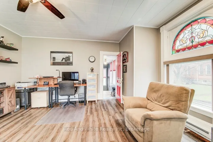 +"PublicRemarks": "Rare, beautifully restored 1895 Victorian farmhouse set on a private 3/4 acre lot, surrounded by open farmland. This spacious home offers an abundance of room with 4 bedrooms and 2.5 bathrooms, blending timeless character with peaceful country living. Set in the peaceful hamlet of Kennicott, this home offers space, privacy, and timeless Victorian proportions, with original stained glass featured in select rooms. Behind the character, extensive system upgrades deliver true peace of mind, including a metal roof with lifetime warranty, electrical: seller advises knob & tube wiring has been removed, system upgraded over time, new drilled well with UV and filtration (2018), furnace, heat pump and A/C (2017), upgraded insulation, and new baseboard heaters with thermostats for efficient supplemental heat. Pellet stove installed in 2018 (WETT certified).Renovated kitchen (2020), updated bathrooms (2019-2025), and refreshed finishes make this a genuine move-in-ready property. Heated, spray-foam insulated basement with 7' ceilings and garage access adds valuable usable space and awaits your finishing touches-ideal for an in-law suite, games room, or bonus living area. Unique about this home is the ample storage space throughout.Oversized double garage, refurbished porches, deck, well-maintained gardens, and a fenced enclosure complete this rare offering. Many amenities surround this home, including G to G trails, campgrounds, a dog park, community centre, and more. Approx. 25 minutes to Stratford and Listowel and an hour to Kitchener-Waterloo and London."