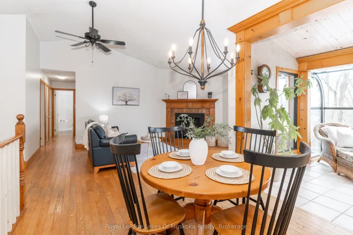 +"PublicRemarks": "Rare 1-Acre In-Town Oasis! Discover the perfect blend of privacy and convenience in this meticulously maintained 3+1 bedroom, 3-bathroom bungalow. Nestled in a sought-after, established neighborhood just minutes from downtown shopping and schools, this property boasts a stunning 1-acre lot with mature trees and breathtaking views overlooking the lower west area of Bracebridge. The bright, open-concept main floor is designed to impress, featuring soaring vaulted ceilings, rich hardwood floors, and south-facing windows that flood the space with natural light. Cozy up by the living room's gas fireplace or enjoy a meal in the dining area. The galley-style kitchen offers ample storage and leads to a spectacular custom glass sunroom-your new favorite spot to soak in the views year-round. The main level hosts three bedrooms, including a spacious primary suite with a walk-in closet and 4pc ensuite bath, plus an updated 3pc main bath. The walkout lower level is equally impressive with high ceilings and large windows, offering a massive rec room, a 4th bedroom (perfect for an office or den), a 3pc bath, and a large laundry room. Step outside to the private patio and expansive backyard. Complete with an attached double garage, paved driveway & flexible closing date make this the perfect opportunity for you and your family."