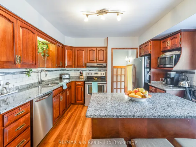 +"PublicRemarks": "Find your comfort here with 2+1 bedrooms, 2 bathrooms an In-law suite with a walk-out, thoughtful updates and a serene view in your backyard! 2 spacious bedrooms on the main level with the primary having the ability to fit a king size bedroom suite, across the hall is another good sized second bedroom with a deep closet. The updated modern main floor bath has a separate tub, shower and floating vanity for easy clean up. Bright, spacious, updated kitchen with some modern finishes, such as the island, modern backsplash, granite counter tops and stainless steel appliances. Making your way out to your large large deck with built in gazebo makes for a great entertaining space or those relaxing moments. The main living-room has a cozy functional wood fireplace with an electric insert adds charm to this space. In the sunroom just off the kitchen, a cozy sitting area with a gas fireplace is wrapped almost entirely in windows, this bright, private retreat offers a front-row seat to nature, as well as the peaceful greenspace that extends beyond the yard making it the perfect spot to unwind and take in the view. Don't forget about the In-law-suite, that has the capability of increased ceiling height, a large bedroom that fits a king size bed easily and comes with 2 closets a well as 2 windows. In the cozy recreation room there are more windows and a convenient walk out onto a good sized deck with gas hook up for the b.b.q. There is a 3 piece washroom and kitchen that makes this area self contained unit. Tons of storage areas, easy access to shopping, walking trails that you can access right from your backyard and so much more. Central Air/Furnace are 3 years old, h.w.t. and water softener owned, water treatment, 50 year shingles, insulated shed with electric, upper deck approx. 4 years old."