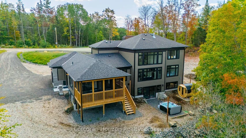 +"PublicRemarks": "Your 2024 custom-built home in Lake of Bays, Muskoka, awaits. This truly stunning and luxurious property has the quality you desire in the location you've always wanted. The space flows eloquently, natural light pours in, and high-end finishes and furnishings, giving you a taste of luxury in the midst of beautiful, rugged forests, offering a rare, exceptional getaway that most people never expect to find in this part of Muskoka's landscape. Thoughtfully designed for all-season living, the home features soaring 18 ft ceilings, a dramatic wall of windows, four spacious bedrooms, including a main-floor primary suite with an ensuite, and a versatile office or rec room. Your new home could also be a revenue-generating asset. There is already a track record and operations in place for a fully licensed, turnkey short-term rental business, with bookings consistently rolling in. The choice is yours: continue the STR business as is, make this your new home in Muskoka or do both! This stunning 2,860 sq. ft. retreat at the end of a cul-de-sac sits on 2.3 acres and is a nature lover's paradise, backing onto an environmentally protected area with breathtaking panoramic water views that can be seen from every room in this home! A fully screened Muskoka room, an upgraded full-sized walk-out basement, and a waterside-view fire pit create perfect spaces for entertaining or relaxing year-round. Experience total privacy and relaxation with a new (2025) hot tub & barrel sauna. Your personal spa experience is ready and waiting. Surrounded by a vast network of trails and a short drive to Algonquin Park, Deerhurst Resort, Limberlost Forest, Arrowhead Park, and the vibrant town of Huntsville. With easy access to Highways 11 & 60, plus a Tarion New Home Warranty and future access to a clubhouse with an infinity pool and gym (completion Spring/Summer 2026), this is your chance to embrace luxury living in the heart of Muskoka's wilderness."