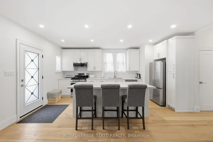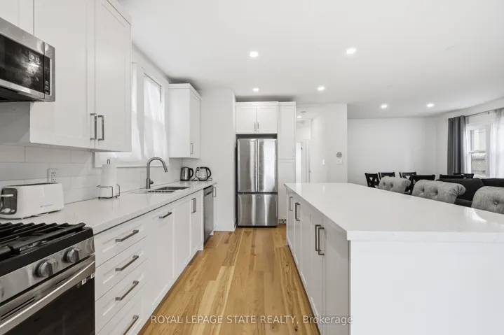 +"PublicRemarks": "Beautifully renovated open-concept bungalow in the heart of trendy Durand, offering over 1,500 sq ft of finished living space including a fully finished lower level. The home sits on the historic grounds of the former Wesanford Estate gardens and still showcases the charming original iron and stone wall, adding a unique touch of character. The custom kitchen is filled with natural light from updated windows and features stainless steel appliances, quartz countertops, and a classic subway tile backsplash, all modern and move-in ready. Major updates completed in 2022 include the roof, soffits, eavestroughs, furnace, HVAC vents, electrical wiring, hardwood flooring throughout both levels, solid wood interior doors, and 6-inch baseboards, all professionally installed. A private driveway and garage-a rare find in this sought-after neighbourhood-add to the home's appeal, along with solid double-brick construction. The spacious deck overlooks a low-maintenance backyard complete with a storage shed and rough-in for a future hot tub, perfect for relaxing or entertaining. Ideally located just minutes from Locke Street scenic trails, shops, restaurants, and convenient GO Train access, offering the perfect blend of lifestyle, charm, and convenience."