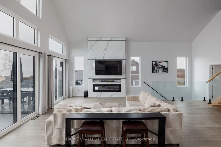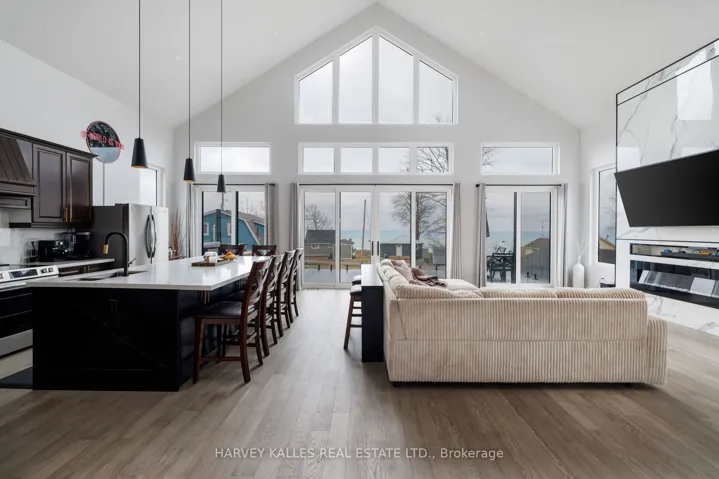 +"PublicRemarks": "Soaring ceilings, uninterrupted lake views, and striking modern design define this custom-built detached home set in the charming town of Dunnville. The property benefits from a registered right of way providing effortless access to the lake. Thoughtfully designed to maximize light, space, and connection to its natural surroundings, this residence offers a truly unique living experience.The main living level is designed for both everyday living/entertaining, featuring a striking 23-ft vaulted ceiling with floor-to-ceiling windows and gorgeous lake views. A marble-finished fireplace adds a refined focal point. The open concept space features engineered hardwood flooring, a sleek open-concept kitchen with oversized island, built-in appliances. Walk out to your waterfront-view composite deck with outdoor dining/cooking area and modern, glass railings.Privately set above the living space, the lofted primary suite offers a truly special retreat. Overlooking the main living space below, this airy and light-filled sanctuary feels both connected and secluded, with generous proportions, a walk-in closet, and elevated views that create a calm, resort-like atmosphere.Upon entry at the ground level, an impressive garage space with sauna, gym and mechanical room adds exceptional utility and flexibility. An additional detached garage, storage shed, and expansive asphalt driveway further enhance the functionality of the property.Located just minutes from the Grand River, Byng Island Conservation Area, Rock Point Provincial Park, and local amenities, this home offers the perfect balance of small-town charm and outdoor lifestyle."