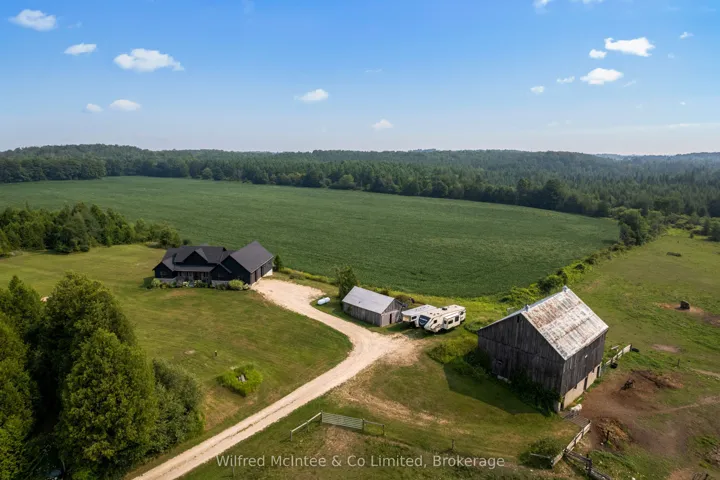 +"PublicRemarks": "81 acres showcasing quality craftmanship, functional living, and the ideal farm life. The property features a luxury home was built in 2022, solid bank barn, crop land, pasture for horses or cattle, plus groomed trails and a creek meandering through the forest. There are 45 cleared acres, and a 10-acre maple bush. The house was intentionally designed with an open-concept layout and a walkout basement, showcasing quality finishes throughout. An oversized walkout deck is perfectly positioned to maximize views of the exceptional landscape. The exterior is finished with wood siding and limestone stone, carrying a 50-year warranty. The bank barn is solid and equipped with water, stalls, and ample dry storage. The land has groomed trails, workable fields, fenced pasture, and the Traverston Creek. Added bonus is the adjacent 25-acre public Farden Lake. Additionally, the Glenelg Klondyke Trail, offering 400 acres for riding, hiking, and groomed cross-country skiing, is within easy reach. This is not just a home; it is the dream rural lifestyle!"