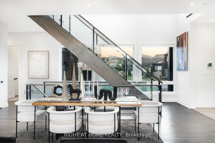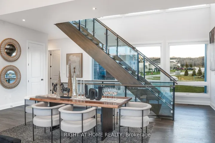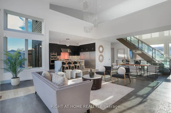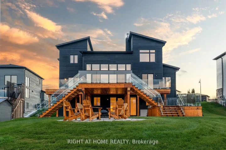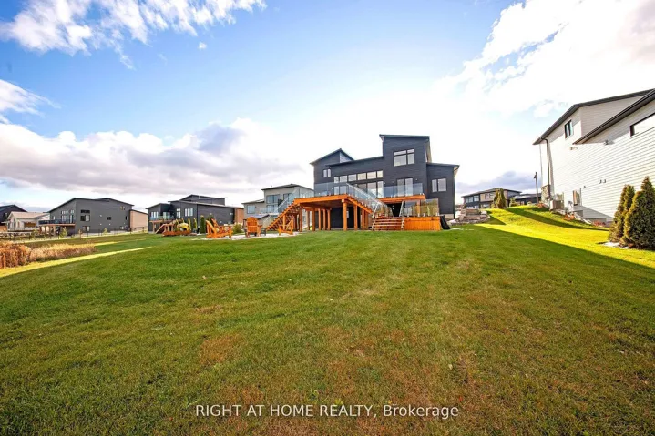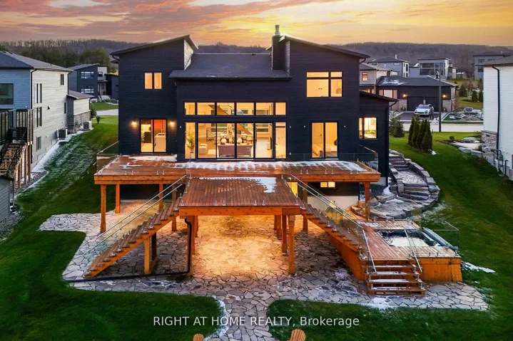 +"PublicRemarks": "Welcome Home! An extraordinary residence perfectly positioned on one of Lora Bay's most prestigious and private lots. Overlooking the 13th hole, with sweeping views of Georgian Bay and the Niagara Escarpment, this architectural masterpiece offers an unparalleled lifestyle of elegance and serenity. Showcasing 5,337 sq. ft. of refined living space, this home impresses from the moment you step inside. The grand great room features 25 ft. cathedral ceilings, floor-to-ceiling windows, and seamless access to an expansive Invisi Rail deck-a truly spectacular vantage point for sunrise, sunset, and year-round fairway vistas.The chef's kitchen is designed for both culinary excellence and entertaining, complete with a commercial-grade gas range, built-in convection microwave, stainless steel triple refrigerator/freezer, oversized island, and automated main-floor blinds for effortless comfort and privacy.The luxurious primary suite offers a private retreat with a gas fireplace, walkout to the deck, walk-in closet, and spa-inspired ensuite with a deep soaker tub and glass shower. The main level also includes an additional bedroom, a four-piece bath, and a convenient laundry room.The second-floor mezzanine overlooks the great room and leads to a bright office with bay views, two generous bedrooms, a four-piece bath, and a stylish wet bar with dishwasher-ideal for relaxation or hosting.The walkout lower level features a 1,700 sq. ft. approved apartment, perfect for extended family or guests, offering a roughed-in kitchen, two bedrooms, a four-piece bath, and direct access to the luxury hot tub and fire-pit lounge. An elegant paved driveway, curtain-style windows, and a double-car garage enhance the already striking curb appeal of this exceptional property. This is more than a home-it's a lifestyle of distinction in one of Georgian Bay's most desirable communities."