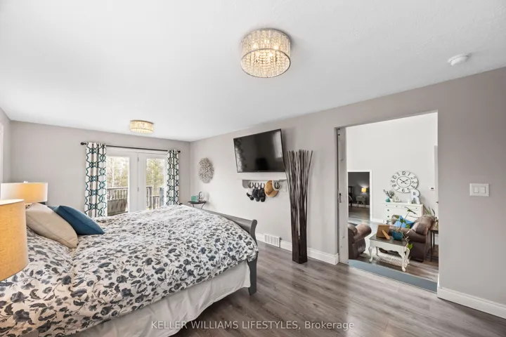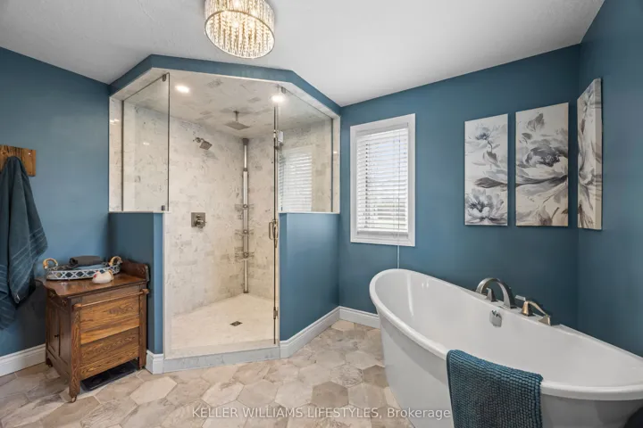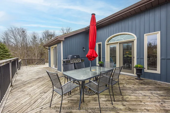 +"PublicRemarks": "Nestled at the end of a quiet dead-end street in the charming hamlet of Nairn, this private 2.5-acre property offers exceptional peace and tranquility. Enjoy your morning coffee or an evening glass of wine on the expansive back deck or the lower-level covered patio while taking in the serene surroundings. Thoughtfully designed with 3200 sq ft of finished living space, this home features 5 spacious bedrooms, with two conveniently located on the main level and three additional bedrooms on the lower level. The primary suite is a true retreat, complete with a well-appointed 6-piece en-suite featuring a soaker tub and a generous walk-in closet. The heart of the home is an expansive open-concept kitchen, dining, and living area, ideal for both everyday living and entertaining which is enhanced by stunning views of the backyard. Skylights fill the living room with natural light, while a striking spiral staircase leads to the lower level, adding architectural elegance. Enjoy seamless indoor-outdoor living with a walkout to the upper deck from the main living area, as well as a second walkout from the lower-level rec room to the covered patio. Extensively updated in 2017, this home features many significant improvements, including most windows and doors, bathrooms, and HVAC, among others. A heated 2-car garage adds comfort and convenience for year-round use. Outdoors, the beautifully landscaped grounds offer a truly unique lifestyle. A custom-built pond provides enjoyment in every season, perfect for summer swimming and winter skating, while garden boxes and chicken coops add to the property's charm. Backing onto open space and a small stream, the setting creates a private, picturesque retreat just minutes from everyday amenities. This home is walking distance to the elementary school, local park and a short 5 minute drive to Ailsa Craig and 20 minutes to London. This is a rare opportunity to own a one-of-a-kind home where comfort, style, and nature come together."
