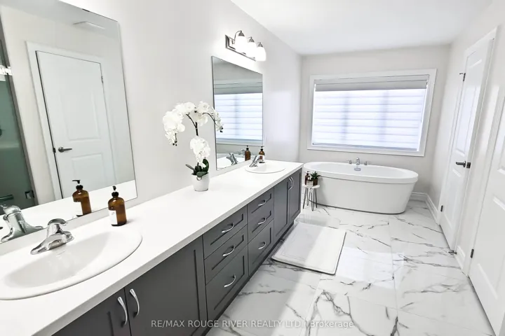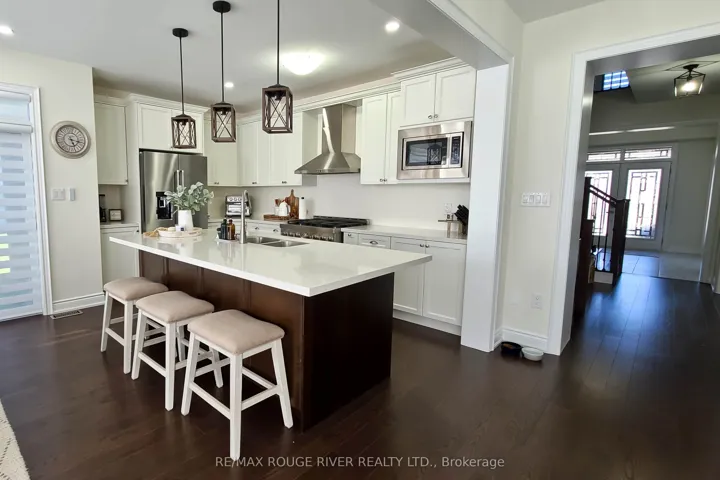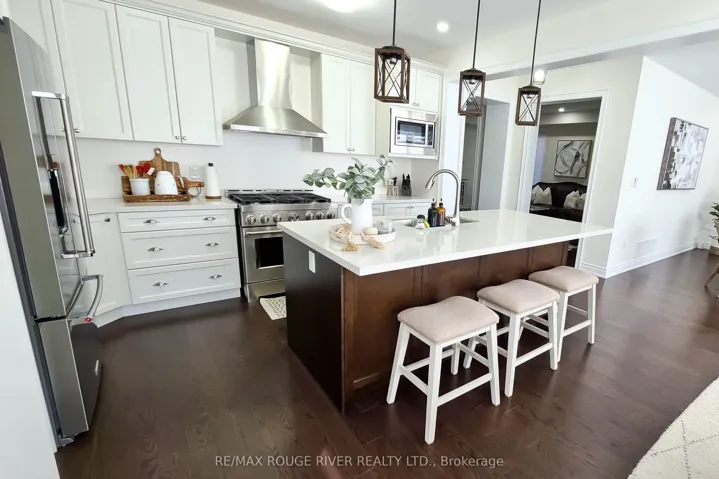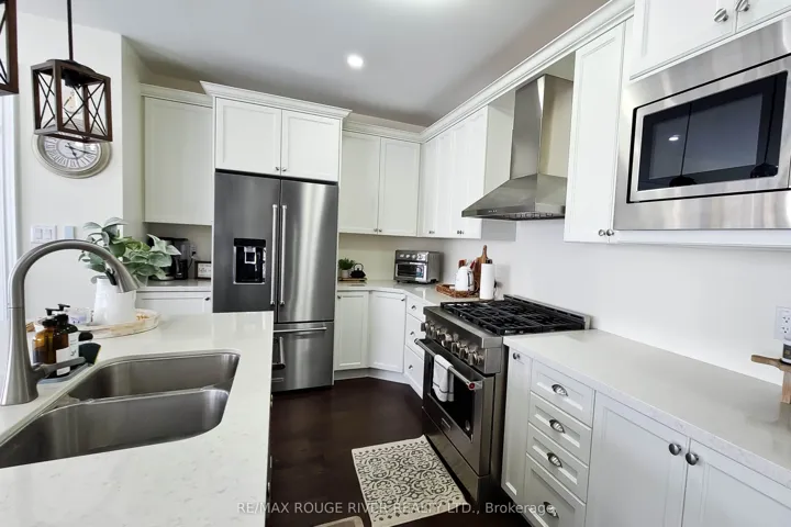 +"PublicRemarks": "Welcome to your ultimate dream home located in the quaint town of Millbrook, just 30 mins away from Oshawa and 15 mins away from the City of Peterborough. Do you crave a lifestyle where your kids can play safely in the streets with other children? Do you want to live in a community where neighbors aren't strangers and truly look out for one another? If your answer is yes, then this home is for you! More than $100K spent on upgrades with almost 3500 sqft of living space luxury. The main floor features 9 ft ceilings, hardwood flooring, upgraded light fixtures, pot-lights and oversized windows for tons of natural light. A dream kitchen with upgraded cabinets, stainless steel high-end quality Kitchen Aid appliances and Quartz Counters. The Family Room features a marble fireplace and Sonos in-ceiling speakers for all your music and entertainment needs. The Living and Dining area offers additional massive space equipped with more pot-lights and massive windows. Working from home? This home also features a big office space that can be converted into a 5th bedroom or library. The home also features a huge mudroom with access to a 4-car tandem garage to put all your cars, bikes, boats and toys. Walk up to the 2nd level and you will be greeted by 4 oversized bedrooms, two en-suite washrooms and a one 4 pc bathroom. A huge primary bedroom with a luxurious 5 pc ensuite with quartz counter-top, roman bathtub, separate toilet and a standing shower. All windows feature custom made motorized Zebra blinds that you can program and control. Smart garage door openers plus a modern security monitoring system featuring a smart doorbell camera, motion detectors, glass break sensors, smart thermostat and smart door locks. Rough in wiring available outside ready for outdoor CCTV cameras. The house also sits on a massive pie shaped lot for maximum curve appeal. Its the only Wallace Model with a 3 car door garage in the whole neighborhood with driveway parking for 5 additional cars!"