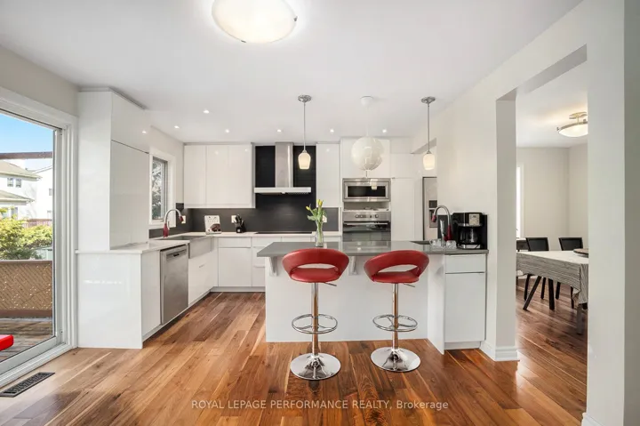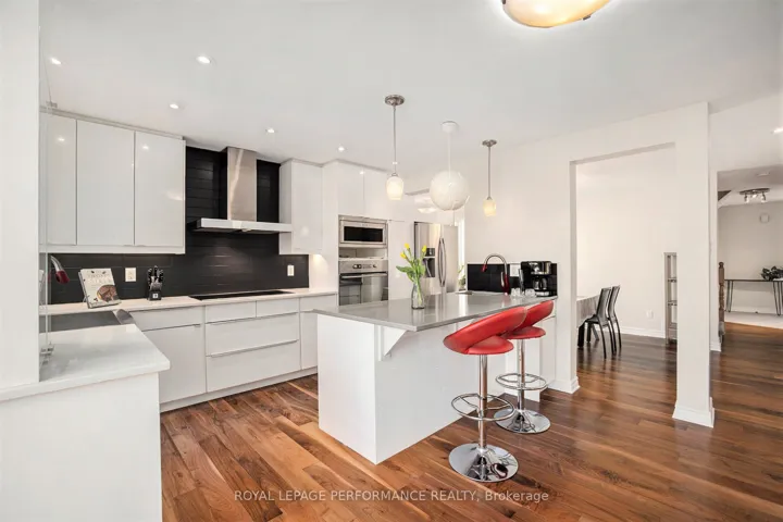 +"PublicRemarks": "Welcome to this impeccably updated 4-bedroom, 4-bathroom two-storey residence, perfectly positioned in one of Kanata's most sought-after communities. From the moment you step into the inviting foyer, you are greeted by a warm blend of style and comfort. The main level features a seamless mix of hardwood and tile flooring, complemented by a formal living room and a spacious family room anchored by a cozy fireplace. At the heart of the home is a stunning custom kitchen ('14), designed in a timeless black-and-white palette and finished with quartz countertops, a newer cooktop ('25), prep sink, extended breakfast bar, pot lighting, and a designer backsplash. Thoughtfully laid out to balance openness and definition, it flows effortlessly into the dining area, ideal for both everyday living and entertaining. Patio doors lead to a beautiful cedar deck and a large, fully fenced backyard. The main floor is completed by a stylish powder room ('23) and a renovated laundry room ('23) with built-in shelving, a sink, and direct access to the double garage. Upstairs, new carpeting ('24) enhances four spacious bedrooms, including one with a walk-in closet and cheater access to a renovated 4-piece bathroom ('15). The primary suite offers a private retreat with a fireplace ('23) and a luxurious 5-piece ensuite ('14) featuring heated floors, a freestanding tub, glass shower, and dual vanities. The finished lower level adds a large recreation room, a sleek 3-piece bathroom, ample storage, pantry, and extra fridge. Freshly painted ('24), with a 45-year shingle roof ('14), furnace ('14), AC ('20), EV wiring, and 200-amp service. Located near parks, schools, South Highlands Trails, Richcraft Recreation Complex, dining, and Kanata's tech hub."