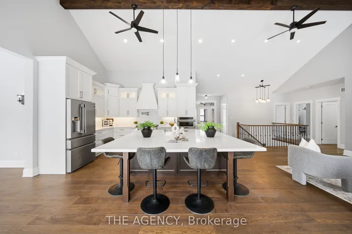 +"PublicRemarks": "Two Homes. Endless Possibilities. Set on a sprawling one-acre lot, 75 Robinson Road delivers a rare 2-for-1 opportunity-a stunning newly built stone bungalow plus a second residence with an attached shop (28' x 26'). Whether you're planning for multi-generational living, in-laws, a home-based business, or a serious workshop setup, this property is built to flex with your lifestyle. The main home is a showstopper. A custom stone bungalow featuring 3 bedrooms and 2.5 bathrooms showcasing exceptional craftsmanship throughout. Vaulted ceilings soar above the open-concept living, dining, and kitchen spaces, while oversized windows flood the home with natural light. Engineered hardwood flooring and striking wood beam details add warmth and architectural edge. The kitchen is pure entertainer energy-anchored by a spacious eat-in island, accented with under-cabinet lighting, ample custom cabinetry, and seamless access to the backyard through elegant glass doors. Tucked into its own private wing, the luxurious primary suite is a true retreat, complete with backyard access, a walk-in closet, and a beautifully finished ensuite. Two additional generously sized bedrooms, a full bath, powder room, and a large laundry room with direct garage access complete the main level. Downstairs, the unfinished basement spans an impressive 2,000sqft, offering a blank canvas to dramatically expand your living space-think home theatre, gym, additional bedrooms, or a full secondary suite. The spacious oversized double car garage (29' x 27') offers convenient drive-through access, and plenty of additional storage. Outside, you get the best of both worlds: peaceful country living with wide-open space, while remaining minutes from local amenities, conveniences, and attractions."