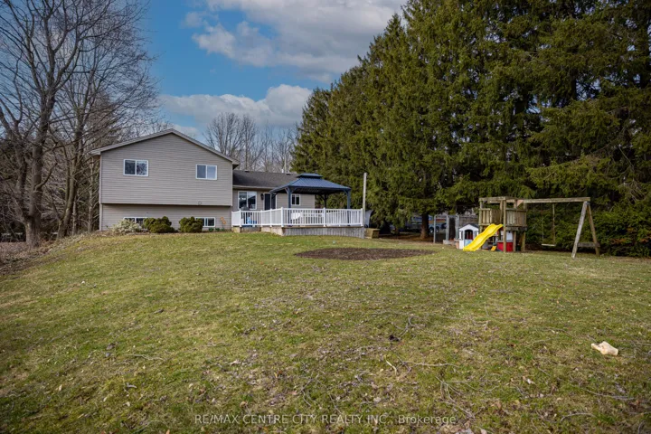 +"PublicRemarks": "Welcome Home!!Location Location Location...minutes from the 401 exit at Elgin Road (Imperial Road). Very well maintained 4 level side split on a lovely lot just east of Imperial/Elgin Road and backing onto farmland. Well kept throughout main and lower levels. As you enter the home you are welcomed to generous sized living room that leads the the eat in kitchen with access to the large yard complete with south facing & spacious deck from kitchen overlooking your yard and fields beyond. Moving to the second level you will find all 3 bedrooms and 4 pc bathroom. The lower level is home to a sprawling family room perfect for movie night as well as a 3pc bathroom. Laundry room is located in the basement with room for storage as well as the utility room. There is a tall tree line on east boundary that creates privacy and weather block. Home heating is supplied via a forced air system using hot water from the water heater. Tesla battery backup gives peace of mind with no cost to the owner on contract from hydro one for 2 more years. High speed Fibre optic internet available"
