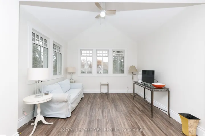 +"PublicRemarks": "Deer, turkey, forest, field and trees. Outstanding views from this charming two bedroom cottage/home footsteps from the best beach sunset in Niagara-on-the-Lake. Wrap around porch, maintenance free landscaping and two separate and private bedroom areas, double car garage. Walk to Old Town Niagara-on-the-Lake, Golf, Arts, Theatre, Shops, Restaurants...morning coffee at Carlotta's, evening strolls through town. This really is an ideal place to spend your days. Main floor master with built in closet, second floor bedroom is a world of its own. Sunlit sitting area with large windows and vaulted ceiling, its own 3pc bath and bedroom area. Very much worth a look!"