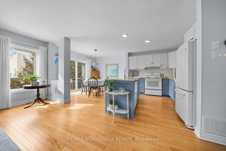 +"PublicRemarks": "Set on a quiet interior street, this detached three bedroom home presents a balanced composition of classic residential architecture & modern interior finishes. A covered front veranda w/accent pot lighting & a double length driveway establish a welcoming streetscape, while a three quarter glass entry door opens to a bright foyer finished w/ceramic tile flooring, architectural baseboards, high flat ceilings & three panel interior doors. The main level is organized around a functional & well proportioned layout. The centre island kitchen forms the heart of the home, appointed w/quartz countertops, a recessed double sink, two tone shaker cabinetry, pot drawers & a tile backsplash. The adjoining dining room enjoys southern exposure & a patio door that extends the space toward the rear yard. Hardwood flooring continues into the living room where a gas fireplace is framed by twin windows, creating a symmetrical focal point & allowing natural light to fill the room. A main floor den enclosed by a French door & full height window offers an ideal work from home environment or private study. A two piece powder room & inside access to the garage complete the level. A Victorian inspired hardwood staircase leads to the second level landing finished in hardwood w/a convenient linen closet. The rear facing primary bedroom features a triple width window, walk in closet & a four piece ensuite designed w/an oval soaker tub, stand alone shower & extended vanity. Two additional front bedrooms provide generous closet space & are served by a four piece main bathroom w/moulded tub & tile surround. The unspoiled basement offers future potential w/an oversized window, laundry area, soaker sink & abundant storage space. Inside access to garage, fenced rear yard, Located within close proximity to schools, parks & public transit, this home offers a thoughtful balance of architectural detail, practical design & everyday comfort. 24 hour irrevocable on all offers."