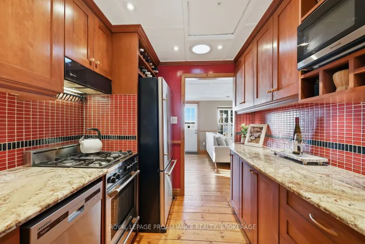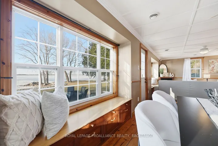 +"PublicRemarks": "Lake Ontario waterfront, on a quiet street just minutes from the city, surrounded by protected forest and move-in ready. At $825,000, it's the kind of property that makes you stop and wonder how it's even possible. This absolutely charming 2-bedroom, 1-bath home has been meticulously maintained and thoughtfully updated over decades of proud ownership. All of the important work is done: metal roof, updated Ecoflow septic system (sized for a much larger home). energy improvements including windows and significant insulation upgrades. Move-in ready doesn't quite do it justice. Beyond care and maintenance, what sets this home apart is the intention behind it. Inspired by Christopher Alexander's A Pattern Language, the design focuses on natural light, comfort and everyday livability - with windows on multiple sides of each room, cozy window seats and clever storage throughout. Originally built in 1948, the home retains character where it matters. The red pine floors in particular are a standout - warm, natural and timeless. Outside, the setting is just as compelling. Expansive views across Lake Ontario toward Amherst Island, mature trees, perennial gardens and a peaceful, welcoming atmosphere. Directly across the road, protected woodland offers trails, wildflowers and a natural landscape that will remain untouched forever. It's a place to slow down, unwind and feel connected - to the water, nature and to home. Ideal for down-sizers, couples or anyone seeking a waterfront getaway. With the oversized septic system there's also flexibility for significant expansion or to reimagine the home over time. It's a rare opportunity to step into lake Ontario waterfront living at a price you can afford."