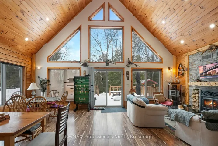 +"PublicRemarks": "Beautiful custom-built four-season cottage/home featuring a warm rustic pine interior and over 1,200 sq ft of fully winterized living space. Situated on over 1 acre of land, the property offers ample room for future development, including the potential to build a second structure. The building permit is closed. This south-facing waterfront property boasts 255 ft of shoreline on the Gull River at Cranberry Lake, offering exceptional privacy, tranquility, and stunning natural views. Inside, you'll find 22-ft cathedral pine ceilings, large triple-pane windows, and an Enerzone high-efficiency wood-burning fireplace, which serves as the heart of the living space, providing warmth and a classic wood-heating experience. The modern kitchen features a live-edge maple countertop, and all major appliances are included. Step outside to a large deck with river views, connected to an above-ground pool, perfect for entertaining. A newly built gazebo over the river, complete with a table and central fire pit, creates an ideal gathering space for family and friends in both summer and winter. Enjoy swimming and fishing from the large dock with a diving board, located beside deep water. Additional features include :New deep-drilled well, Secondary pump system using river water for landscaping/outdoor use, Year-round Township road access and Bell FIBE high-speed internet. Prime location! 8 minutes to Sir Sam's Ski Resort, 10 minutes to Haliburton village, Two grocery stores within 5 minutes and close to ATV and snowmobile trails. All this, less than 2.5 hours north of Toronto."