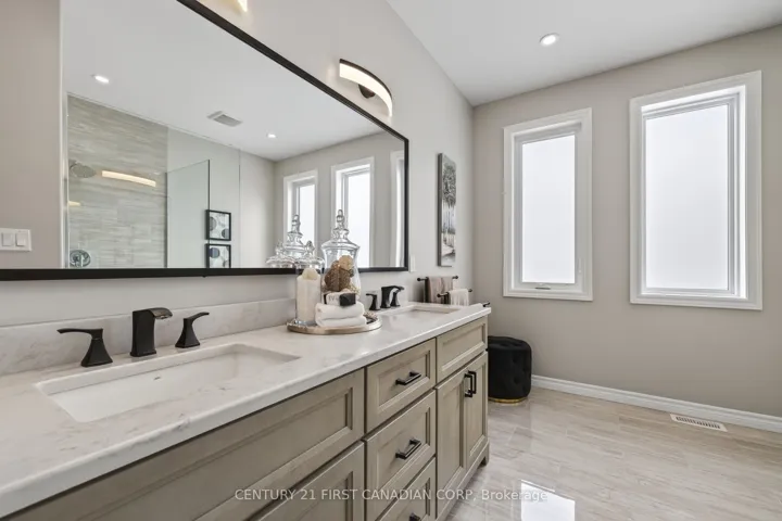 +"PublicRemarks": "Recently reimagined for modern family living, this West Oakville residence blends refined architectural design with a resort-style backyard retreat, all just minutes from the lake. Offering 4+1 bedrooms, 4.5 bathrooms, and a finished lower level, the home delivers a seamless balance of style, comfort, and functionality. The main level is defined by engineered hardwood flooring, expansive floor-to-ceiling windows, and open-concept principal rooms designed for everyday living and entertaining. The custom kitchen showcases quartz countertops, a large centre island with sink, Jenn Air gas range, pot filler, and effortless flow to the backyard. An open-riser staircase with glass panels adds architectural interest, while the living area is anchored by a feature wall with gas fireplace. Upstairs, engineered hardwood flooring continues throughout. The primary suite offers an accent wall, wall sconces, a walk-in closet with built-ins and window, and a spa-inspired ensuite featuring a freestanding tub, glass shower with rainfall showerhead, and double sinks. A second bedroom enjoys its own private three-piece ensuite, while two additional bedrooms share a well-appointed four-piece bath. A convenient laundry room with sink completes the upper level. Outdoors, the fully fenced backyard is a true showpiece. Designed for entertaining and relaxation, it features an inground pool with an eco-friendly and cost-effective copper ionizer system, extensive stone hardscaping, and a covered outdoor living area with gas fireplace. A dedicated BBQ area with gas line and direct side-door access to the kitchen enhances both convenience and functionality. Ideally situated near parks, Gladys Speers Public School, St. Dominic Catholic Elementary School, Queen Elizabeth Park Community and Cultural Centre, shopping, transit, major highways, and the lake, this home offers an exceptional lifestyle in a vibrant, family-friendly community. (certain exterior images have been digitally enhanced)"