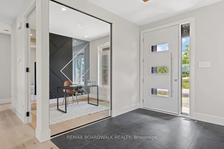 +"PublicRemarks": "Designed by Zanmar Homes, this custom-built 2,918 sq ft bungalow blends luxury with thoughtful design. The main floor features 3 bedrooms and 3 bathrooms, plus a bright home office with a glass wall and door, while the primary bedroom enjoys its own private wing complete with his and hers walk-in closet and a 5-piece ensuite bath. On the opposite side of the home, bedrooms 2 and 3 share a 5-piece bathroom, while bedroom 2 offers a walk-in closet. The great room boasts 18 ft cathedral ceilings and a stone fireplace, and the extended formal dining room opens directly to the covered porch, making it perfect for entertaining. Enjoy 9 ft ceilings, engineered hardwood flooring, 8 ft solid core doors, an upgraded fibreglass front door, and modern black interior and exterior windows with grills. The mudroom off the garage offers pantry access for ultimate convenience. The basement has a separate entrance, ideal for an in-law suite, with the option to finish for additional living space. Ready for occupancy this June, there's still time to personalize the floor plan with trusted Tarion Certified homebuilders. *Interior photos are from previous builds."
