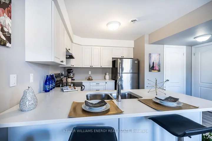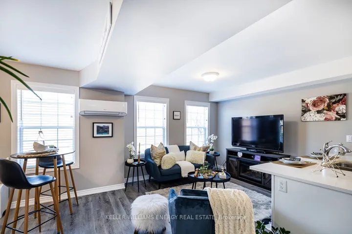 +"PublicRemarks": "Step into this stunning two-story condo townhome in the highly sought-after South-East Village community of Cobourg, perfectly designed for modern living and low-maintenance comfort. The main floor offers an open-concept living and dining area flooded with natural light, creating a welcoming space for entertaining guests or enjoying quiet evenings at home. The contemporary kitchen is a chef's dream, featuring sleek quartz countertops, a breakfast bar, stainless steel appliances, and smart pot drawers for organized storage, making meal prep both efficient and stylish. Luxury vinyl plank flooring throughout the main level adds sophistication and durability, while large windows frame views of the surrounding neighbourhood. Upstairs, you'll find two generously sized bedrooms, a bright three-piece bathroom, and convenient in-unit laundry, combining functionality and comfort for everyday living. The home includes a designated parking space and easy access to public transit, ensuring that your daily commute is effortless. Beyond the home, enjoy the vibrant lifestyle of Cobourg's South-East Village. You're just minutes from downtown, top-rated dining, shopping, entertainment, parks, and a quick two-minute drive to the Waterfront-perfect for weekend strolls, morning jogs, or evening sunsets. The community offers a family-friendly, connected lifestyle with everything you need close to home. Ideal for first-time buyers, downsizers, or anyone seeking a modern, move-in-ready home, this condo townhome perfectly combines style, convenience, and comfort. Don't miss the opportunity to call this beautifully maintained property your new home in Cobourg, where bright, modern living meets a welcoming community"
