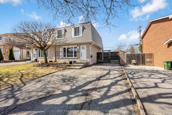 +"PublicRemarks": "Welcome to 280 Quigley Road, a beautifully maintained and thoughtfully updated semi detached home in one of Hamilton's most desirable family friendly neighbourhoods, offering approximately 1200 sq ft of comfortable living space just minutes from top rated schools, parks, shopping, transit and easy highway access, along with a rare 5 car driveway providing ample parking for family and guests. Step inside to a bright and inviting main level featuring a spacious living room with durable laminate flooring and a large front bay window updated approximately 5 years ago that fills the space with natural light. The layout flows seamlessly into the updated kitchen completed in 2017, designed with both style and functionality in mind, showcasing white shaker style cabinetry, sleek dark quartz countertops, stainless steel appliances from 2017 and a classic subway tile backsplash, while French doors provide direct access to the backyard creating a perfect indoor outdoor flow for everyday living and entertaining, along with the convenience of a 2 piece bathroom just off the kitchen. Upstairs, the expansive primary bedroom offers a peaceful retreat with ensuite privilege to the beautifully renovated 4 piece bathroom updated in 2017, while two additional well sized bedrooms provide flexibility for family, guests or a home office. The fully finished basement adds valuable living space with a versatile recreation area ideal for a media room, playroom or workspace and features a side separate entrance off the stairs leading to the basement. Outside, enjoy a private fully fenced backyard designed for both relaxation and entertaining featuring a generous patio and garden shed. Additional updates include roof shingles in 2014, an owned tankless water heater from 2017 and windows updated approximately 9 years ago excluding the front bay window, making this move in ready home an exceptional opportunity in a sought after Hamilton location. RSA."