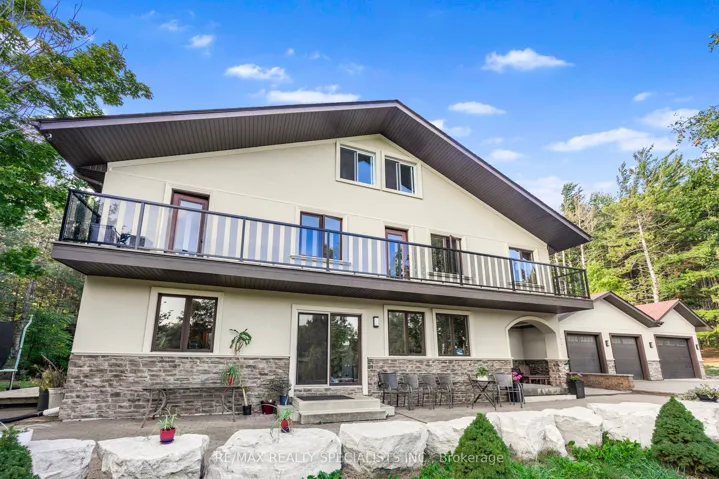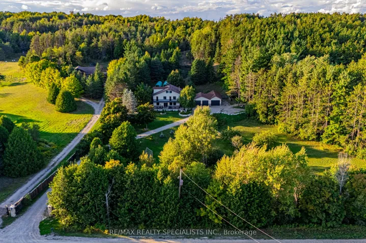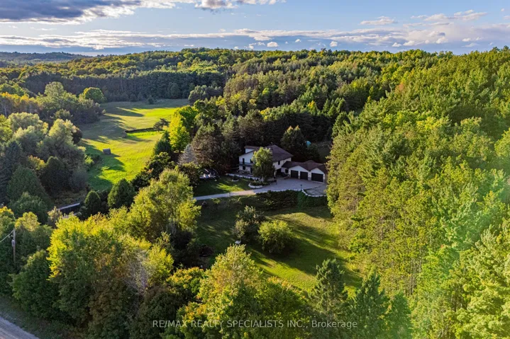 +"PublicRemarks": "Magnificent estate-style home on over 17 Acres of land, offering the perfect blend of luxury, nature and convenience. Meandering private trails, lush landscapes and stunning views create a year-round vacation retreat. A custom gate leads to an interlock driveway and parking area for 8+ vehicles and a 3-car garage with drive-through access.The main floor features a bright living room with wood-burning ceramic stove, formal dining, laundry, office and stylish 3-pc semi-ensuite. The kitchen boasts stainless steel appliances, granite countertops, backsplash, a breakfast bar and walkout to a deck. The second level offers 3 spacious bedrooms, office/study, two elegant bathrooms and a balcony with scenic views. The top-floor oversized primary suite includes skylights and a private 4-pc ensuite. The finished basement expands the living space with a great size recreation room.Enjoy an outdoor paradise just minutes from Mono Cliffs Park, Hockley Valley Resort, Mansfield Ski Club, Bruce Trail, fine dining, craft brewery and winery. Within 30 minutes you can enjoy skiing at Blue Mountain or relax at Wasaga Beach. Vacation living year-round with quick access to Airport Road, combining privacy with effortless travel. A perfect place to call home!"