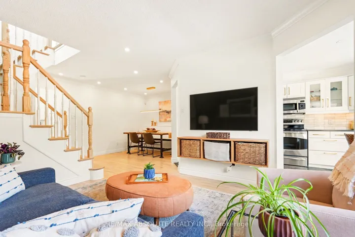 +"PublicRemarks": "Stunning 1,883 Sq. Ft. Freehold Townhouse in the Prestigious Berczy Community Plus approximately 600 sq. ft. of lower-level space.Nestled in the highly sought-after Berczy neighbourhood, only about 12 years old, beautifully upgraded freehold townhouse showcases a timeless stone facade and a fully renovated interior completed just 6-year. Offering the perfect blend of modern comfort and classic elegance, this home is designed to impress.Enjoy soaring 9-foot ceilings, pot lights, and thoughtfully selected designer LED fixtures that create a bright and sophisticated ambiance throughout. The modern kitchen is both stylish and functional, featuring stainless steel appliances, a powerful range hood, and elegant quartz countertops with matching backsplash. Multiple balconies provide seamless indoor-outdoor living, perfect for relaxing or entertaining.The versatile main-floor den can easily function as a fourth bedroom, while the finished basement offers additional flexibility - ideal as a fifth bedroom, recreation space, or home office. With nearly 2,500 sq. ft. of total usable space, there is ample room for family living and gatherings. Located within walking distance to a nearby elementary school (approximately 5 mins) and just a short 3-minute drive to Pierre Elliott Trudeau High School, one of Ontario's top-ranked secondary schools.Note: A friendly, well-behaved dog resides on the property."