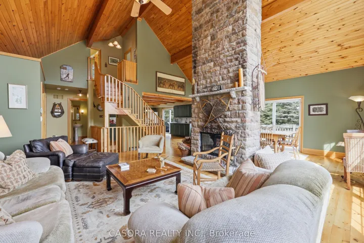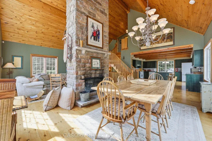 +"PublicRemarks": "Experience the ultimate alpine lifestyle in this stunning ski-in/ski-out chalet, perched at the top of Mansfield Ski Club on a quiet crescent, just over an hour outside of Toronto. Make this your home or vacation house. Situated on a private lot of just under 1 acre with ample parking, this property is designed for family fun and year-round enjoyment. The heart of the chalet is a dramatic A-frame great room boasting soaring pine cathedral ceilings and expansive window views of the Escarpment. The space features warm pine floors anchored by a magnificent floor to ceiling double sided stone finished wood-burning fireplace. The open-concept main floor flows seamlessly into the kitchen, which features wood cabinetry, a large center island, four appliances, and a walk-in pantry. Sliding doors lead to an expansive deck with a Weber BBQ-the ideal spot for après-ski gatherings. A cozy, carpeted separate den and a 2-piece powder room round out the main level. The upper level offers a peaceful retreat with two large, carpeted bedrooms a 4-piece bathroom with jetted tub and separate shower; the primary suite even boasts its own private balcony. The lower level is built for a crowd, featuring two additional large bedrooms, a second 4-piece bathroom, and the warmth of a Vermont Castings wood-burning stove. Perfect for active families, the dedicated ski/mudroom with separate ground-level entrance provides direct access to the slopes for a true doorstep-to-chairlift experience. Mansfield outdoor center just down the road enjoy cross-country skiing, snowshoeing, hiking, and biking. Book your private showing today!!!!"
