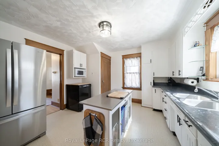 +"PublicRemarks": "This timeless, near-centennial home sits proudly on an extra-wide corner lot, offering generous space, both inside and out! Well maintained and lovingly cherished by the current owner for 45 wonderful years, this property has been cared for with pride and preservation, ensuring its historic beauty endures while remaining comfortable and move-in ready. A welcoming porch greets you through the front entrance and once inside a feeling of home embraces with classic-period warmth from original solid wood trim, floors and doors throughout. A stunning stained-glass feature window highlights the foyer with elegant crystal doorknobs that gleam and compliment the beautiful glass and wood French and pocket doors - which offer optional enclosure of the living room. Quality craftsmanship is found throughout with several built-in storage nooks, adding character and practicality. The sunny kitchen and formal dining room are flooded with natural light through large windows and a patio door leading onto a new 20x16' deck with gazebo, perfect for entertaining or a quiet morning coffee. Upstairs features a 4-pc bathroom, three large bedrooms, including a spacious primary suite with a generous dressing room, built-in cabinetry and adjacent 3-pc ensuite bathroom - complete with laundry (washer/dryer combo unit). Basement boasts an open-concept game & recreation room with a gas fireplace for added warmth and ambiance. A small workshop & bonus secondary laundry space is thoughtfully combined in the utility room. Outside, a fenced portion of yard provides safety for pets and children while a large open & treed corner lot offers privacy &/or additional parking for an RV or boat. A large workshop has endless potential for projects, storage or creative pursuits! Paved walkway and drive allows for easier maintenance + parking for 3-4 vehicles. Enjoy low-cost utilities with heat & hydro, each avg. $90 per month! Shingles, A/C & furnace new in 2012. Water heater - 2024. All appliances included."