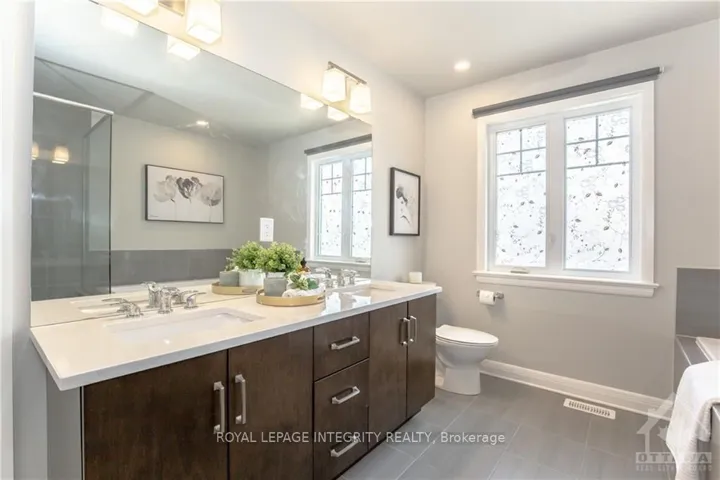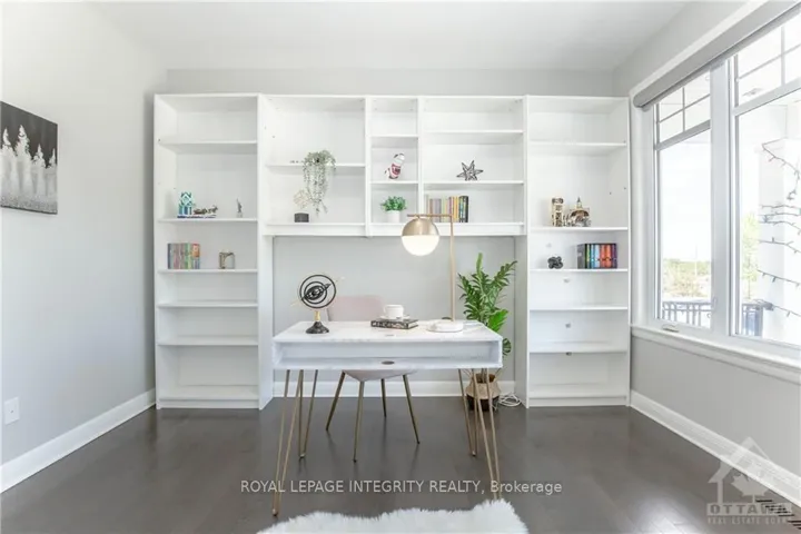 +"PublicRemarks": "Stunning pond-view home in the highly sought-after Richardson Ridge community. This beautifully upgraded Uniform-built double garage single-family home offers 4 spacious bedrooms and 3.5 bathrooms, including 2 ensuites, along with a versatile main floor den, ideal for today's modern family lifestyle. The bright, sun-filled interior is enhanced by professionally landscaped front and backyard spaces. The main level features an impressive open-concept design with 9 ft smooth ceilings, elegant oak hardwood flooring, and pot lights throughout. A dramatic open-to-above dining room creates a grand first impression, while the inviting family room showcases oversized windows and a stylish fireplace. The chef-inspired kitchen is fully upgraded with quartz countertops, high-end cabinetry, pots and pans drawers, a walk-in pantry, stainless steel appliances, modern lighting, and a large island with a flush breakfast bar, perfect for entertaining. Hardwood stairs lead to the second level, featuring a luxurious primary retreat with coffered ceiling, a walk-in closet with Pax shelving, and a spa-like 5-piece ensuite. Three additional generously sized bedrooms include a second ensuite and a full bathroom. The basement offers laundry and abundant storage space. Step outside to a professionally designed backyard oasis complete with an interlock patio, deck, and covered gazebo, ideal for relaxing or hosting gatherings. Located in a family-friendly neighborhood with top-rated schools including W. Erskine Johnston Public School, Earl of March Secondary School, St. Gabriel Catholic Elementary School, and All Saints High School. Walking distance to parks and transit, and just minutes to Kowloon Market and all amenities. Photos were taken prior to current tenant occupancy. The house is in great conditions and well maintained . N11 Signed and tenants will move out by the end of June."