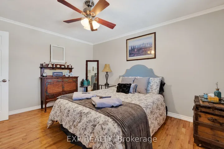 +"PublicRemarks": "Welcome to this beautifully crafted 2017 detached all brick bungalow, offering over 2,200 sq ft of thoughtfully designed living space on just under an acre of landscaped grounds. From the moment you arrive, you'll appreciate the spacious 3-car garage, ample parking for about 12 cars, and the peaceful views that surround the home. Inside, the main level features elegant, engineered hardwood floors, a bright and inviting living room with a cozy fireplace, and a seamless open-concept layout that's perfect for both everyday living and entertaining. The convenient main floor laundry makes daily routines easier, while the spacious kitchen leads out to a back deck complete with a hot tub-an ideal spot to relax and unwind under the stars. With three generous bedrooms on the main floor and two more downstairs, there's plenty of room for growing families or multi-generational living. Four bathrooms and a large recreation room with its own fireplace ensure everyone has space to relax and enjoy. You'll also love the abundance of storage throughout. This truly special property offers a perfect balance of comfort, space, and tranquility, ready to welcome you home. Main floor features 9-foot ceiling throughout and Family 11-feet ceiling."