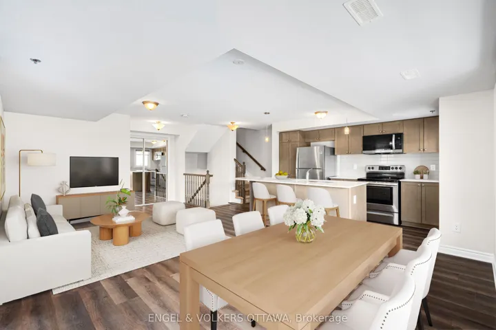 +"PublicRemarks": "Welcome to Wateridge Village - where contemporary design meets a vibrant and growing community. This Mattamy Haydon model end-unit townhome distinguishes itself with a thoughtfully designed layout, enhanced privacy, and an abundance of natural light throughout.The heart of the home unfolds on the second level, where an open-concept living space is both functional and inviting. Expansive, sun-filled windows create a bright and airy atmosphere, while the seamless flow between the kitchen, dining, and living areas makes everyday living and entertaining effortless. The kitchen is anchored by a generous centre island with seating-perfect for casual meals, morning coffee, or gathering with guests-along with the added convenience of a powder room on this level. Upstairs, two well-proportioned bedrooms offer comfort and privacy. The primary bedroom benefits from a cheater ensuite to the sleek, modern full bath, and the inclusion of upper-level laundry adds to the home's practical, well-considered design. A true highlight is the private rooftop terrace-an exceptional outdoor retreat perfect for morning coffee, evening unwinding, or hosting friends under the summer sky."