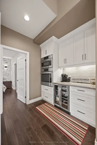 +"PublicRemarks": "Welcome to the exclusive community of Merrywood Meadows in the vibrant lakeside town of Grand Bend. Set on an impressive **80 x 206 ft lot** and backing directly onto the Warner Nature & Wildlife Preserve, this pristine custom-built bungalow offers an exceptional blend of luxury, privacy, and natural beauty.Surrounded by mature trees and tucked toward the back of the community, the home showcases timeless curb appeal with its classic all-brick exterior and inviting front porch. Inside, a bright foyer opens to an expansive open-concept living space filled with natural light and tranquil backyard views. The great room features soaring vaulted ceilings, gleaming floors, and a cozy gas fireplace, flowing seamlessly into the spacious dining area and chef-inspired kitchen.The kitchen is designed to impress with a massive island, premium granite countertops, custom backsplash, picture window, ample cabinetry, walk-in pantry, coffee and wine bar, beverage station, and premium BOSCH stainless steel appliances including a stovetop and double oven.The primary suite offers peaceful views and a spa-like ensuite with double quartz vanity, soaker tub, oversized glass rainfall shower with illuminated niche, private water closet, and a walk-in closet with barn door detail. The main level also includes a laundry closet, two-piece bath, and access to the oversized double garage w/direct access to the finished lower level (in-law suite potential with kitchenette!), featuring a recreation room, wet bar/kitchenette, two additional, oversized bedrooms, fitness area with second laundry, and abundant storage.The backyard is a private oasis with an expansive deck, custom built-pergola, fire pit area, storage shed, and professional landscaping, all backing onto protected natural surroundings offering complete tranquility & privacy. A rare opportunity to own a stunning home in one of Grand Bend's most sought-after communities remaining tucked away in tranquility & just moments to the beach!"