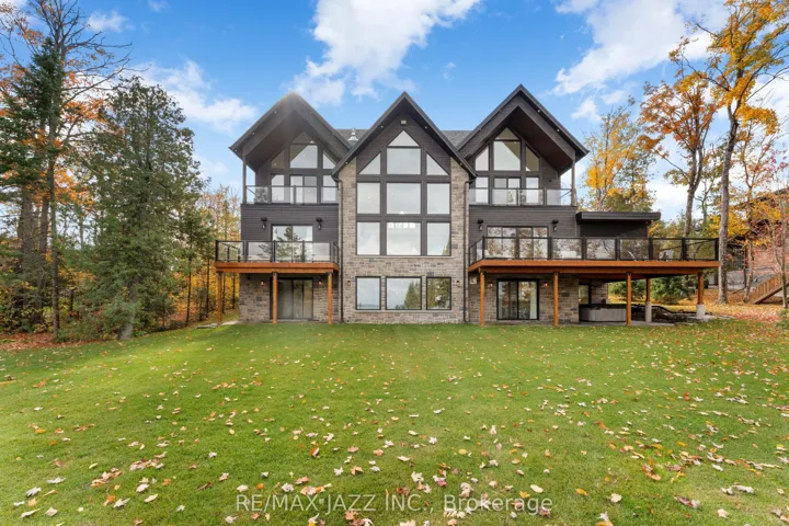 +"PublicRemarks": "Introducing Elysian Peaks - BUILT BY NATIONAL AWARD-WINNING TRADEMARK HOMES. A breathtaking custom waterfront estate. Perfectly positioned on 104 feet of pristine Balsam Lake shoreline, this residence blends architectural excellence, timeless craftsmanship, and lakeside luxury across nearly 6,000 sq. ft. of finished living space. Built in 2021, the home features soaring cathedral ceilings, an open-concept layout, and expansive windows framing sweeping lake views. The chef's kitchen with premium appliances flows into the dining area and dramatic two-story great room centered around a stunning stone fireplace - a space that embodies warmth and sophistication. Offering 6 bedrooms and 7 bathrooms, every guest is treated to privacy and comfort. The main floor includes the primary suite with a private lake-view balcony, 5-piece ensuite, and walk-in closet, plus two guest bedrooms, one with a private ensuite, and a large laundry/mudroom with access to the ultimate triple-car "dream garage" - complete with a car hoist, organizational shelving, custom cabinetry, and ample room for all your toys. The second floor showcases two additional bedrooms, each with private ensuites and balconies, set on opposite wings of the home and connected by an elegant catwalk-style walkway overlooking the main living area. The walkout lower level is an entertainer's dream with a full wet bar, family and gym areas, two guest bedrooms, two bathrooms, and secondary garage access. Outside, enjoy a firepit lounge, hot tub, and powered concrete pad ready for a future double dry-slip boathouse, along with a private dock, sandy-bottom waterfront, and gorgeous lake views. Additional features include generator backup, heated basement floors, drilled well, in-ground sprinklers, and high-speed internet. Elysian Peaks redefines modern waterfront living on Balsam Lake"