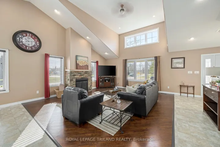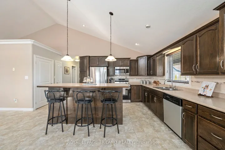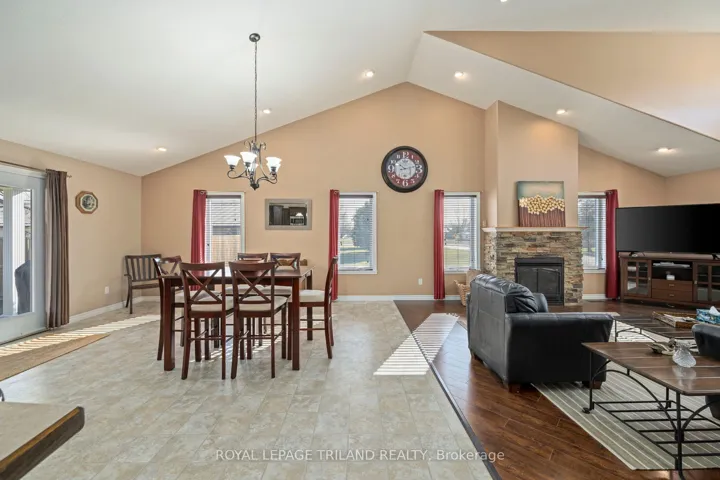 +"PublicRemarks": "Beautiful 1,772 sq ft bungalow offering true one-level living on a mature, treed corner lot in the quiet community of Vienna. A rare combination of size, layout, and design, this home showcases soaring vaulted ceilings, an expansive open-concept floor plan, and an abundance of natural light through oversized windows-creating a bright, airy feel that's difficult to find in bungalow living.The main living space is both functional and inviting, anchored by a spacious family room with natural gas fireplace and a well-appointed kitchen featuring oak cabinetry, stainless steel appliances, and a central island. The layout offers exceptional flow and separation of space, ideal for everyday living, hosting, or accommodating multiple stages of life.The primary bedroom provides a private retreat with walk-in closet and 4-piece ensuite. Two additional bedrooms and a second full bathroom complete the main level, offering flexibility for family, guests, or home office use. The mostly finished basement extends the living space with large above-grade windows, a third full bathroom, and a fruit cellar-well-suited for a recreation area, guest suite, or extended family setup.Exterior features include a fully fenced yard, covered front and rear porches, heated double car garage with automatic opener, and a Wagler mini barn for additional storage. Additional highlights include 200-amp service, natural gas furnace, central air conditioning, sump pump, and Generlink hookup for backup power integration.Located just minutes from Port Burwell Beach, Lake Erie, marina, and campgrounds, this property delivers a rare opportunity to secure a spacious, move-in-ready bungalow in a peaceful setting with convenient access to outdoor recreation."