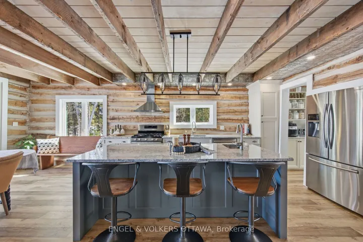 +"PublicRemarks": "Set on a private, treed lot with 154 feet of Ottawa River frontage, this is a rare opportunity to own a truly special waterfront property. Tucked away from the road and surrounded by nature, the setting offers a sense of calm and privacy, with uninterrupted river views that carry through every principal space in the home. Custom-built and thoughtfully designed, this 2-bedroom, 2-bath residence blends comfort with timeless character. In-floor heating provides consistent warmth underfoot, while a gas fireplace adds both ambiance and function. Large windows frame the water from nearly every room, filling the home with natural light and creating a seamless connection to the outdoors. The layout is both functional and inviting, ideal for everyday living or weekend escapes. Each space has been carefully considered to maximize views, privacy, and ease of use. A heated bunkie offers flexible additional space-perfect for hosting guests, a private home office, or a quiet retreat. The newly built, oversized heated garage is a standout feature, offering ample room for vehicles, storage, and recreational equipment, with space to accommodate an active waterfront lifestyle. Whether you're enjoying morning coffee overlooking the river, spending afternoons on the water, or unwinding by the fire in the evening, this property delivers a lifestyle that is both relaxed and refined. A unique offering that combines privacy, natural beauty, and quality construction-just a short drive from town, yet a world away. This property has never been affected by flooding."