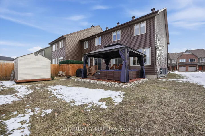 +"PublicRemarks": "OPEN HOUSE SUNDAY APR. 12TH, 1-3 PM. Welcome to 23 Duncanville St., ideally situated in the heart of the village of Russell. This charming 3-bedroom end-unit home is filled with natural light, thanks to its many large windows. Upon entry, you're greeted by a spacious foyer that leads into a bright, open-concept main floor. The functional kitchen features an oversized island, ample cabinetry, and generous counter space-perfect for both everyday living and entertaining. The dining and living areas flow seamlessly, with patio doors opening to a deck and gazebo. A convenient powder room completes the main level. Upstairs, you'll find three well-sized bedrooms, including a large primary suite with a walk-in closet and a private ensuite featuring a glass shower. A full bathroom and second-floor laundry add to the home's practicality. The finished lower level offers additional living space with a cozy gas fireplace, plenty of storage, and a rough-in for a future bathroom. The double-wide laneway accommodates up to four vehicles. Enjoy being just a short walk from the pond and take in the area's beautiful sunsets. Located in a desirable neighbourhood steps to the 10 km paved New York Central Recreational Trail, Russell Fair Grounds, arena, four schools, library, conservation area, sports dome, restaurant, cafe and more. New amenities coming soon include the Russell Recreation Complex with 3 ice rinks, a 25-meter indoor pool, plus The Russell Station Trail / Eadie Park incl. a tennis and pickleball courts, splash pad and play structure (fall 2026). Book your viewing today!"