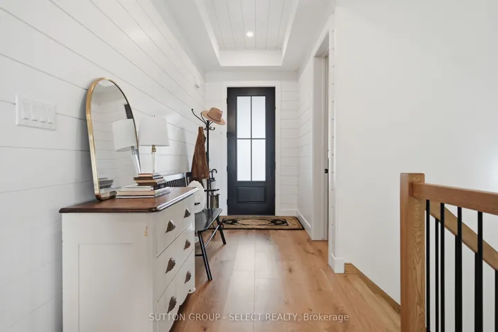 +"PublicRemarks": "Welcome to this beautifully crafted custom one-floor home with a fully finished walk-out basement, ideally located in the highly sought-after Warbler Woods community in West London. Backing onto open fields with no rear neighbours, this property offers privacy and a peaceful setting. Showcasing timeless modern farmhouse design, the exterior blends white board and batten with brick, exposed aggregate concrete driveway, double car garage, and a charming covered front porch. Inside, you'll find 1,840 sq ft of thoughtfully designed main floor living with hardwood throughout and classic modern finishes. The custom kitchen combines style and function with wood and white cabinetry, quartz countertops, stainless steel appliances, and a walk-in pantry. The bright dining area overlooks open farm land and provides direct access to the expansive covered and uncovered rear deck - perfect for entertaining or unwinding at the of the day. The great room is anchored by a gas fireplace, custom built-ins, and a vaulted ceiling. Tucked away, the primary suite offers a quiet retreat with a walk-in closet, a beautifully finished 5-piece ensuite, and its own access to the covered deck. A second bedroom, full bath, and main floor laundry complete this level. Downstairs, the walk-out basement extends the living space with two additional bedrooms, a full bath, a spacious recreation room, plus dedicated areas for a home office and gym. Sliding doors lead to a patio and fully fenced backyard. This home balances comfort and style in a truly special setting - just minutes from excellent schools, parks, shopping, dining, and nature trails."