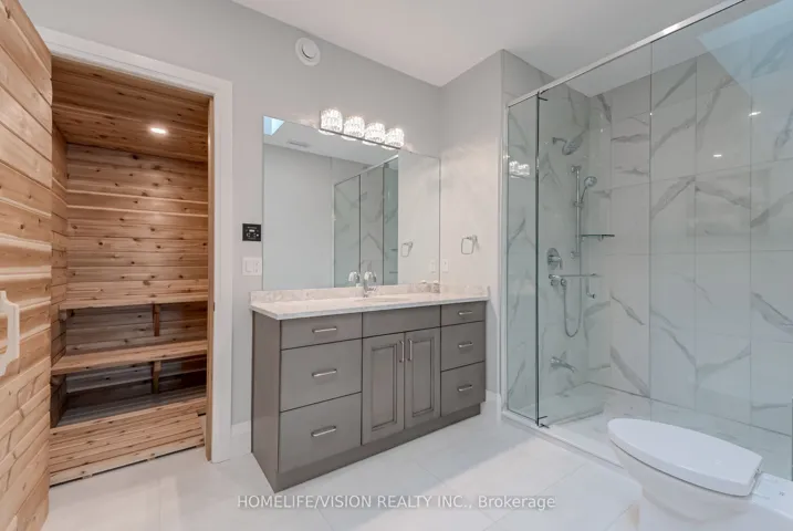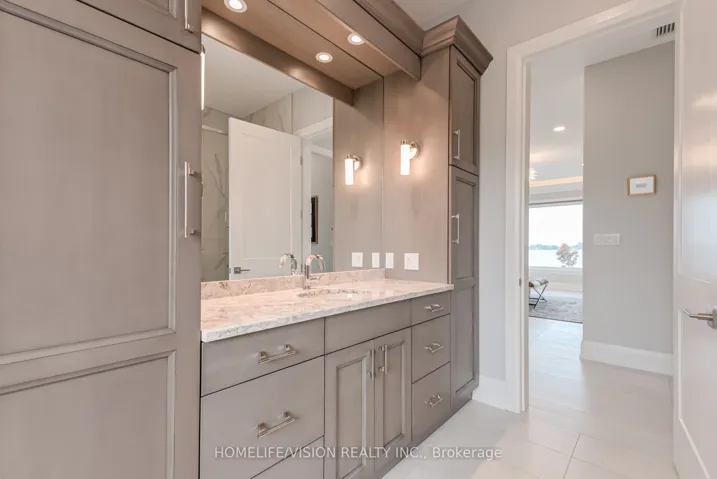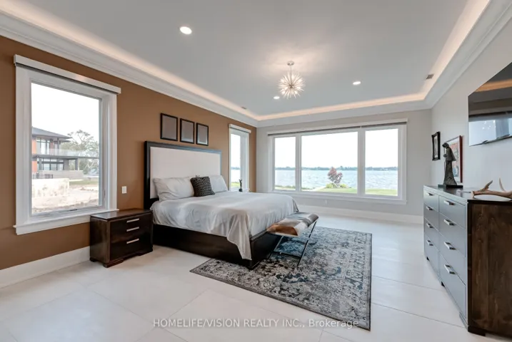+"PublicRemarks": "Bay of Quinte Beauty Set majestically on the tranquil shores of the Bay of Quinte, this extraordinary custom-built waterfront estate is a rare jewel in Bellevilles luxury market. Completed in 2023 and crafted with unparalleled attention to detail, this home reflects a legacy of craftsmanship, sophistication, and pride. Welcome to the property that redefines lakefront living in every sense. Architectural Elegance Meets Modern Comfort Privately set on a full acre of land, this 5,000 sq. ft. masterpiece boasts a full stone exterior, a commanding presence from the road, and panoramic lake views from nearly every principal room. The design is both impressive and inviting: an open-concept layout anchored by 19-foot ceilings in the great room, and floor-to-ceiling Anderson triple glaze windows that immerse the home in natural light and tranquil waterfront vistas. Luxury in Every Detail The home features four spacious bedrooms, including two upper-level suites with south-facing balconies overlooking the Bay of Quinte. A striking second-floor bridge way connects the east and west wings, creating a dramatic interior experience rarely found in private homes. Premium features include: Motorized, high-quality blinds throughout Electric fireplace10-foot ceilings on the main floor, and 9-foot ceilings upstairs Heated ceramic flooring on the main level Engineered maple hardwood floors on upper level Custom sauna, offering the perfect relaxation space year-round Custom closets and cabinetry throughout the house. Gourmet Kitchen & Entertainer's Dream The chefs kitchen is a work of art, outfitted with top-of-the-line Miele appliances including: Stainless steel fridge & freezer Induction cooktop Wall oven Combi- steam wall oven Dishwasher Vacuum sealing drawer for sous-vide cooking147x42 quartz topped island Quartz counter tops and backsplash MUST SEE !!!"