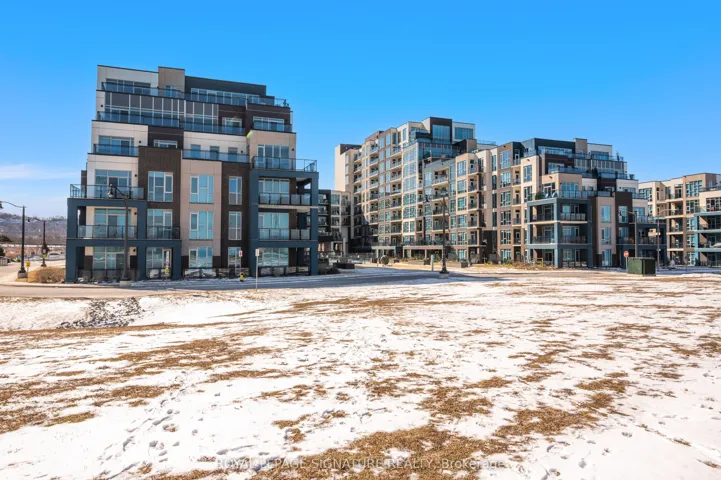 +"PublicRemarks": "Welcome to Aquazul | Grimsby-on-the-Lake. Property Highlights: Executive 1-bedroom suite in sought-after Aquazul, Soaring 10-foot ceilings, Wall-to-wall windows with abundant natural light, Bright open-concept living & dining layout, Modern kitchen with upgraded cabinetry & breakfast bar, Sleek bathroom with standing glass shower, Private open balcony with refreshing lake breeze, Parking & locker included. This unit provides Resort-Style Amenities: Heated outdoor pool with cabanas, Fully equipped fitness centre & yoga studio, Private theatre room & games lounge, Party/social room with full kitchen, Landscaped courtyard with BBQ area, Secure underground parking & ample visitor parking. Not only that, it's in a Prime Location: Steps to boutique shops, restaurants & lakefront boardwalk, Easy QEW access, Approx. 1.5 km to future Grimsby GO Station, Views of Lake Ontario & CN Tower on clear days from the lake board walk. This is a place where every day feels like a getaway."