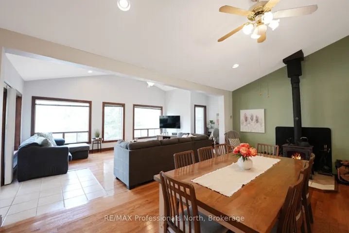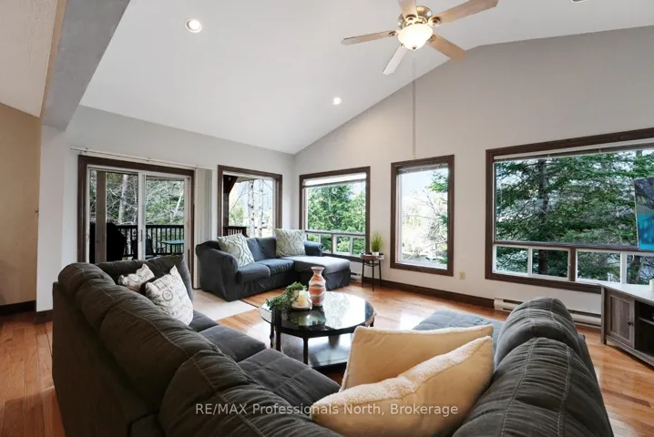 +"PublicRemarks": "Surrounded by towering trees and rich natural beauty, this 4-season cottage on Long Lake offers a peaceful escape just 10 minutes from the Village of Haliburton. Enjoy excellent cell and internet service along with convenient access to local amenities like shopping, dining, schools, and healthcare. Set on a tiered lot, the property features a deep-water docking area, perfect for swimming, fishing, and boating on the clean waters of Long Lake and its adjoining Miskawbi Lake. Wildlife lovers will appreciate frequent visits from birds, deer, turtles, and mink, along with vibrant displays of red trilliums, perennials, and wildflowers. Inside, the 3-bedroom, 1-bathroom cottage boasts approximately 1,400 sq ft of open-concept living space with vaulted ceilings, a woodstove for year-round comfort, and large picture windows framing the lake view. The spacious living and dining area flows seamlessly to a lakeside deck and covered patio-ideal for entertaining in any weather. A fire pit area completes the outdoor experience, making it easy to relax under the stars. Whether you're seeking a private year-round home or a cottage retreat with all the comforts, this property offers the best of cottage country living."