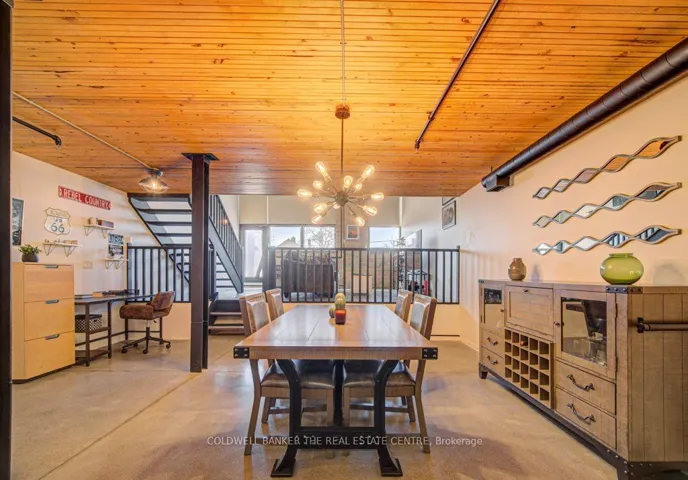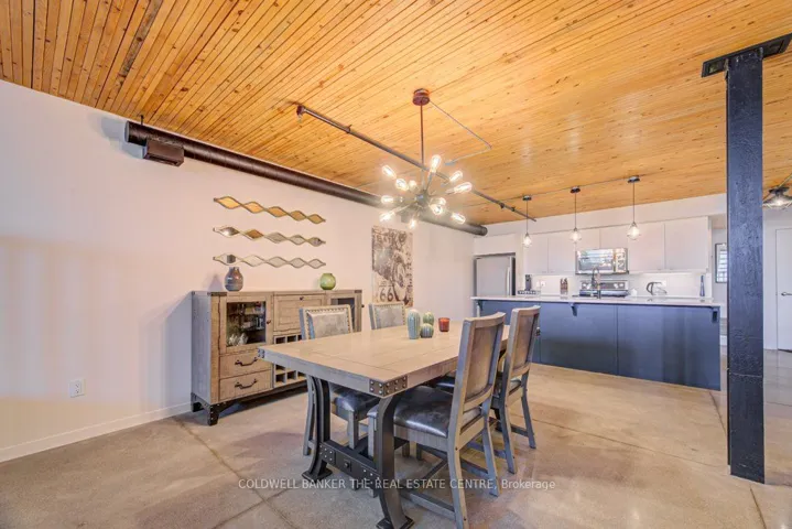 +"PublicRemarks": "Spruce Street Lofts presents a unique opportunity to own a piece of Galt's industrial history. This 1,691 sq. ft. updated warehouse conversion strikes a bold balance between raw materials and polished finishes, featuring striking cement floors and original brickwork under towering ceilings. The expansive open-concept layout is a centerpiece of modern function, seamlessly connecting a gourmet kitchen-boasting premium quartz countertops, modern painted cabinetry, stainless steel appliances, and an oversized island-to the sun-filled dining and lounge areas. This airy flow is perfect for entertaining, with wall-to-wall windows framing the urban landscape. Privacy remains paramount, with the building nestled in a quiet residential pocket bordering a park, yet located only minutes from the city's premier arts, dining, and yoga studios. High-end updates abound, from the designer lighting throughout to the spa-inspired bathroom with its deep soaker tub. Featuring secure underground parking and a rare private back patio, this loft offers the scale of a house with the effortless lifestyle of downtown condo living."