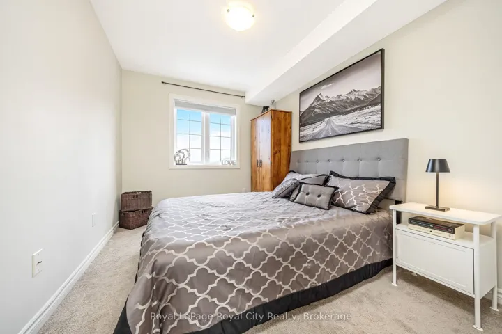 +"PublicRemarks": "Welcome to this beautifully designed stacked townhome offering a unique and functional layout in a desirable Rockwood setting. Thoughtfully laid out, the main level features comfortable and private sleeping quarters, including two well-appointed bedrooms and convenient access to bathrooms and laundry-creating a quiet retreat away from the home's main living spaces. Downstairs, the home opens into a bright and inviting living area where the kitchen, dining, and living spaces come together seamlessly-perfect for both everyday living and entertaining. The open-concept design is complemented by ample natural light and a walkout to your own private patio, ideal for enjoying morning coffee or summer evenings outdoors. With its smart separation of space, modern functionality, and low-maintenance lifestyle, this home is perfectly suited for first-time buyers, downsizers, or investors looking for a turnkey opportunity in a growing community just minutes to local amenities and the Rockwood Conservation Area. The property includes two surface parking spaces #5 & #6"