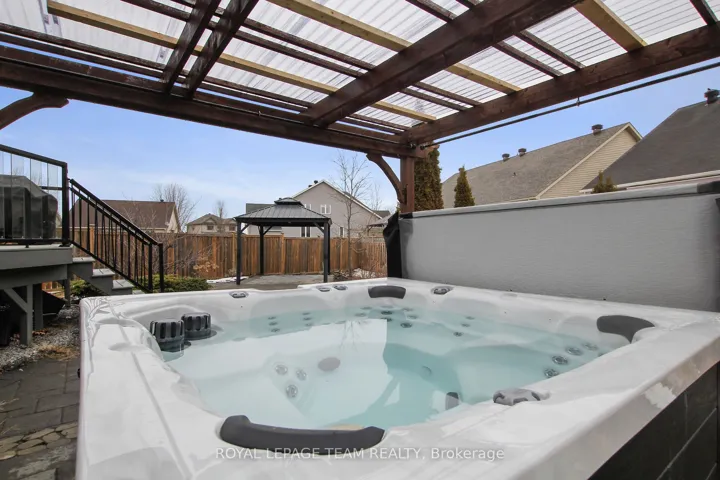 +"PublicRemarks": "Welcome to an exceptional offering in the heart of Carleton Place-a premium 4-bed, 4-bath executive 2-story home, built in 2015 and ideally positioned on one of the largest and most desirable lots in the development. This beautifully upgraded home stands apart with thoughtful enhancements & upgrades throughout, including hardwood floors and staircase, floor-to-ceiling fireplace w/stone facade, additional windows on the main level and basement that flood the interior with natural light. The open-concept design is both functional & inviting, perfectly suited for everyday living and entertaining. The kitchen will inspire the chef in you; featuring sleek white cabinetry finished to the ceiling, centre island w/seating, granite counters & pantry. Upstairs offers 4 beds, including a primary suite featuring a spa-inspired ensuite w/custom shower, granite ct & double sinks. The professionally finished basement significantly expands the living space with a large open family room, games area, and a 4th bath with a shower. Above-grade daylight windows enhance the brightness of the lower level. Outdoors, the expansive, fully fenced yard creates a private, resort-like setting. A composite walkout deck, gazebo, pergola, Tiki bar with seating, fire pit, gas BBQ, and a hot tub (2024) make this an ideal space for relaxing or entertaining. Additional features such as interlock patios, underground sprinklers & paved driveway ensure ease of maintenance. Extensive recent updates provide peace of mind, including: furnace, A/C, tankless hot water heater, roof & driveway, SS kitchen appliances, garage door & openers, and Go Vee permanent exterior lighting. Ideally located within walking distance to shopping, restaurants, and the vibrant downtown core, with convenient access to Hwy 7, this home offers the perfect blend of lifestyle, space, and location. A rare opportunity to own a highly upgraded property on a premium oversized lot in one of Carleton Place's most sought-after neighbourhoods."