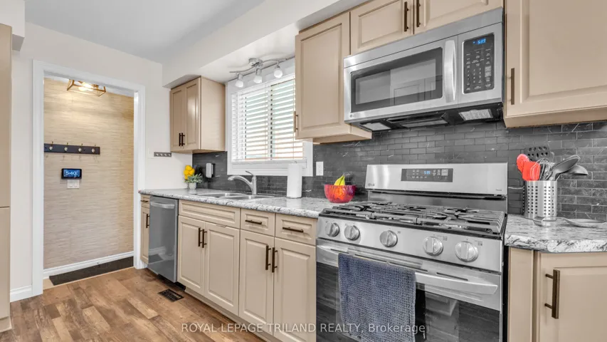 +"PublicRemarks": "Welcome Home Sweet Home to 150 Banbury Road! Fantastic 3+1 bedroom, 2 bath brick backsplit located in the adorable Pond Mills neighbourhood, featuring a large fully fenced yard and in-ground pool! The main floor includes hardwood flooring in the living room, a beautiful bay window, and a spacious eat-in kitchen. The kitchen was refreshed in 2020 with painted cabinets, new hardware, and updated countertops, laminate flooring, and all kitchen appliances replaced in 2021.The upper level offers three bedrooms (all with closets), and a renovated bathroom. The lower levels feature an inviting family room, an additional bedroom, 2-piece bathroom, shower, and plenty of storage space. Key updates include roof & shingles (2025), furnace & AC (2015), windows (2008), gutter guards (2024), new thermostat, washer (2015), and dryer (2025). The home also features professional wildlife prevention work by Skedaddle with a lifetime warranty.Enjoy summer in your private backyard oasis complete with deck, in-ground pool, pool liner (2018), pool pump and motor (2020), winter safety cover (2020), and new solar blanket (2025).Incredibly convenient location close to parks, shopping, Victoria Hospital, and Highway 401."