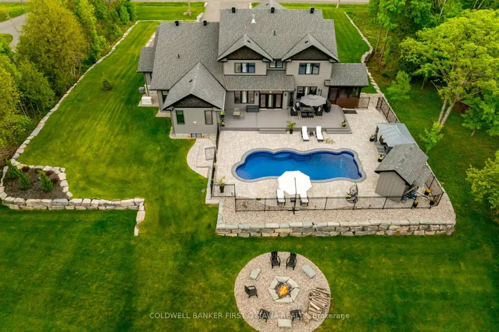 +"PublicRemarks": "Welcome to this thoughtfully designed, newly built luxury home crafted for ideal multi-generational living. Set on two acres of lush green space and surrounded by mature forest, the property features two distinct residences, each with its own private entrance and garage.The main home makes a striking first impression with its charming wraparound porch and serene natural setting. Inside, the smart and spacious layout includes a main-floor office or den, a grand family room, and a light-filled kitchen with expansive windows that frame uninterrupted views of the outdoors.Every detail has been carefully curated from custom built-ins and elegant trim to radiant in-floor heating and upscale lighting. Upstairs, you'll find four generous bedrooms and three full bathrooms, including a luxurious primary suite and a convenient Jack-and-Jill bath.The fully finished lower level is an entertainers dream, featuring a large rec room ideal for movie nights or game day, a dedicated home gym, an additional bedroom, and a full bath all with heated flooring for year-round comfort.The secondary dwelling offers true bungalow-style living with a main-floor primary bedroom, a spacious laundry/mudroom off the garage, a full bath, and direct access to the shared backyard. Downstairs, a large rec room and bonus room offer flexible space for guests, hobbies, or additional living.Step outside to your private backyard retreat fully landscaped and complete with a 16 x 40 in-ground pool, composite decking, screened-in porch, pool shed, interlock patio, wrought iron fencing, and an elevated fire pit area perfect for summer days and starlit evenings."