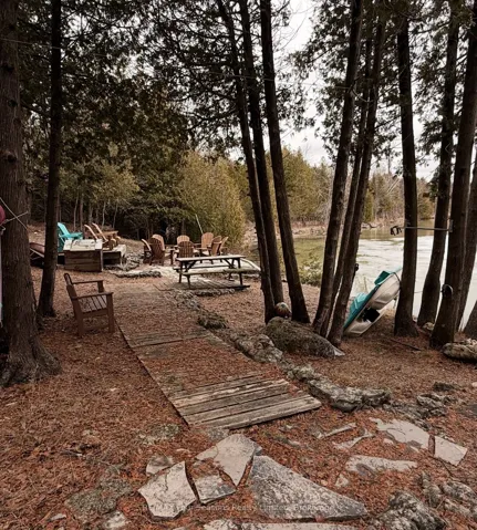 +"PublicRemarks": "Welcome to one of the most private waterfront settings on the north shore of Berford Lake. Set on 2.1 acres and surrounded by a stunning mix of mature hardwoods and evergreens, this property offers approx. 105 feet of clean shoreline and the kind of privacy that is getting harder and harder to find on the Southern Bruce Peninsula. The waterfront is exactly what buyers are chasing, a beautiful sand bottom entry with excellent water depth, perfect for swimming, boating, and long summer days on the lake. The 3 bedroom cottage features a cathedral ceiling in the living area, anchored by a striking floor to ceiling stone fireplace. Step outside to a spacious waterside gathering area around the firepit, ideal for entertaining or simply taking in the view. A detached 20 x 24 metal garage gives you plenty of room for all the toys, boats, and gear that come with lake life. A recently constructed A-frame bunkie offers room for the kids to have campouts and build memories. This one is about the land, the privacy, and the lifestyle. Properties like this do not come up often."